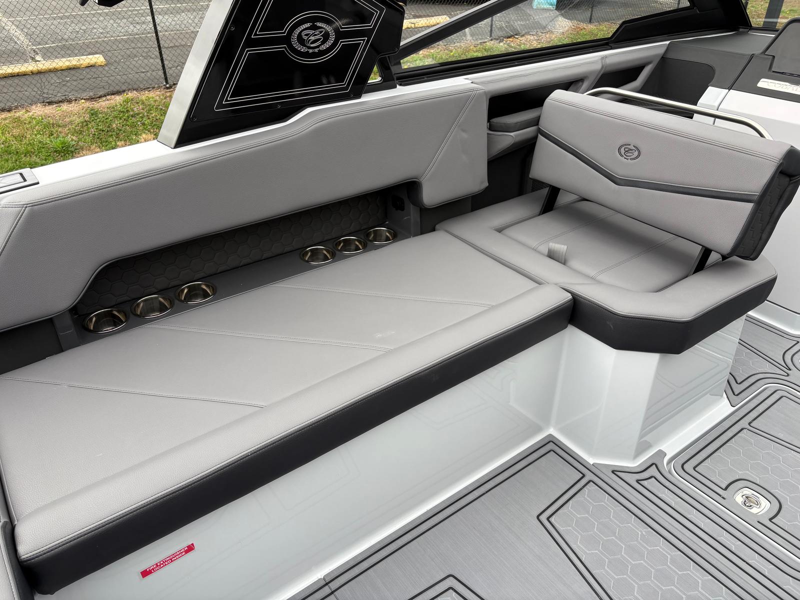 Beyond its impressive performance and stylish design, the 2026 Cobalt R8 Surf offers practical benefits that make boat ownership a breeze. The boat’s generous length provides ample storage for gear, water toys, and personal items, keeping the deck clutter-free and organized. The stainless steel docking lights enhance visibility and safety during nighttime docking, while the battery maintainer/charger ensures your boat is always powered up and ready to go.The El Arch Prisma Black Fold with Bimini adds versatility, allowing you to quickly adapt to changing weather conditions and keep your guests comfortable throughout the day. The forward-drive system simplifies docking and maneuvering in tight spaces, reducing stress and making every trip more enjoyable. With its combination of luxury, performance, and convenience, the R8 Surf is designed to fit seamlessly into your lifestyle.