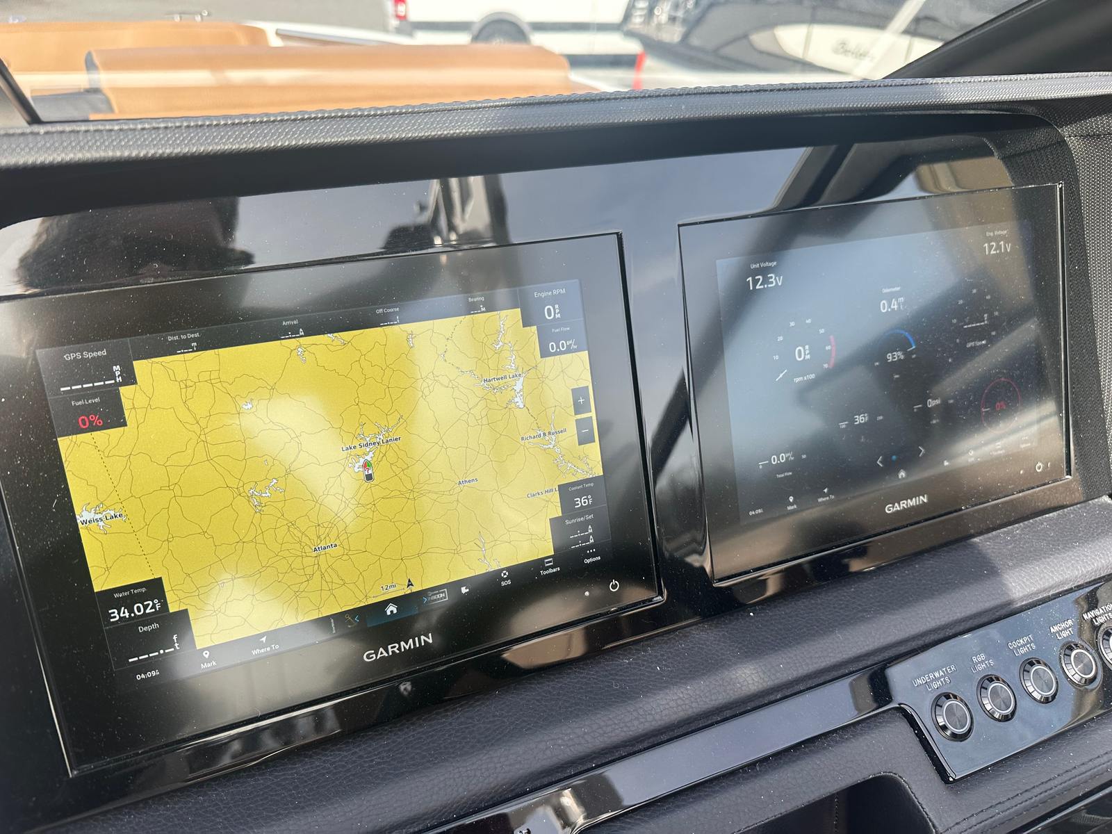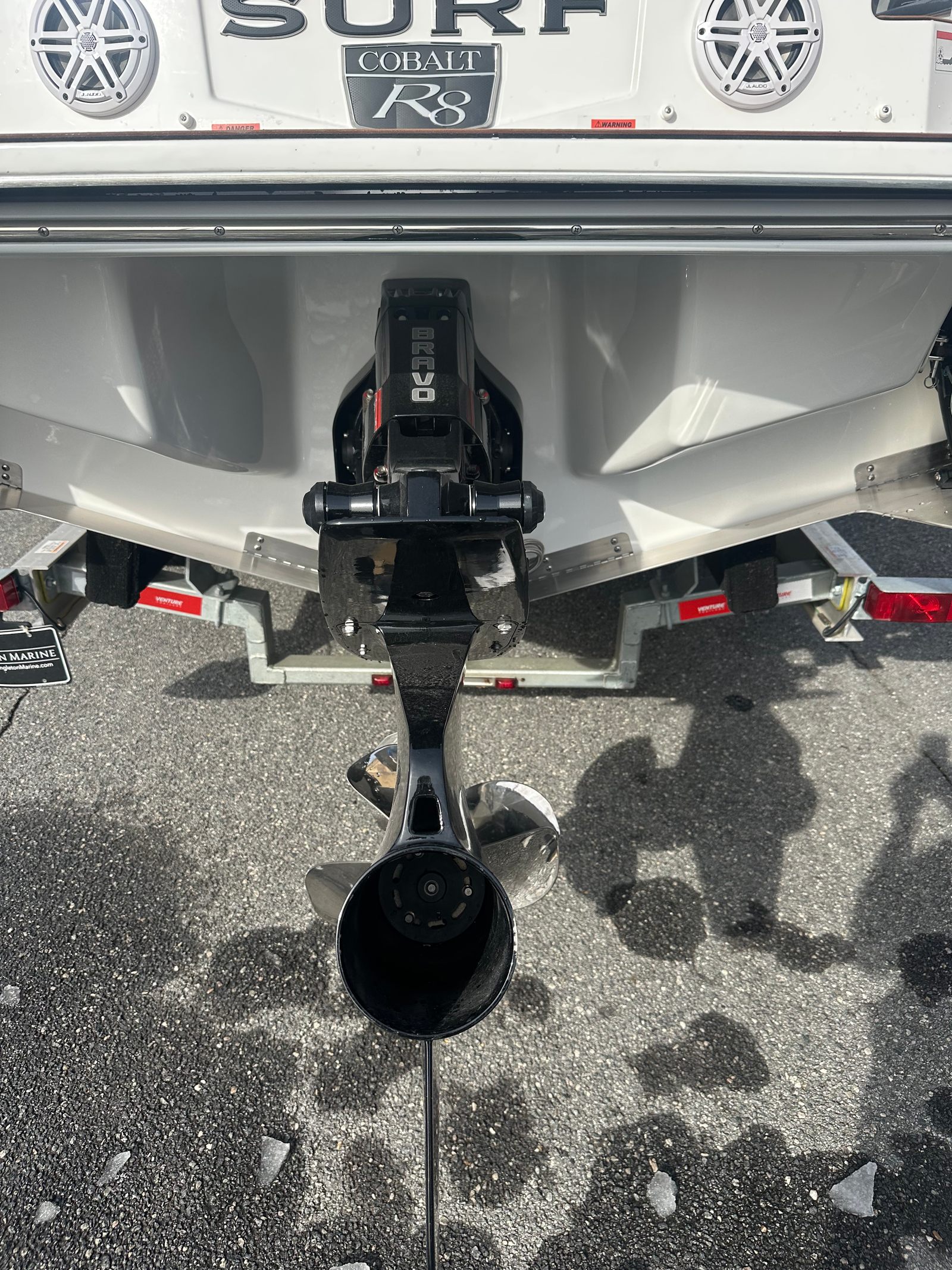 The Cobalt R8 Surf is packed with special features that elevate your time on the water. The included battery maintainer/charger (110V) keeps your boat ready for action, ensuring that your adventures are never cut short by a drained battery. The bow tonneau cover and cockpit tonneau cover, both in a stylish Capt/Navy color, provide protection from the elements and keep your boat looking pristine. For added safety and convenience, the rear-facing camera offers enhanced visibility when maneuvering in tight spaces or docking.Step inside the R8 Surf and you’ll be greeted by a luxurious interior finished in Caramel, Carbon, and Ebony, creating a warm and inviting atmosphere. The docking lights, crafted from stainless steel, not only enhance the boat’s appearance but also improve visibility during evening outings. The White EL Arch, Prisma (Folding) with Navy Bimini, adds a touch of elegance and provides shade on sunny days, while the electric adjustable seat ensures personalized comfort for the captain. A flagpole with flag adds a classic nautical touch, making the R8 Surf as stylish as it is functional.