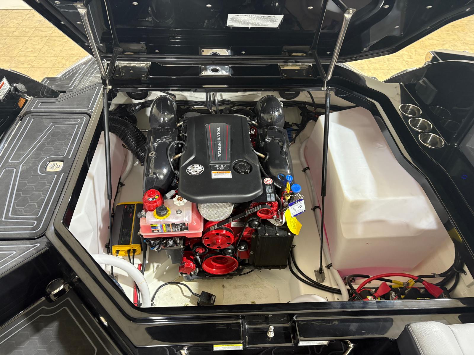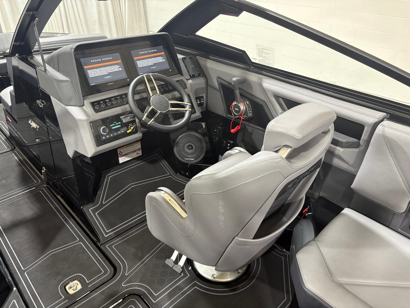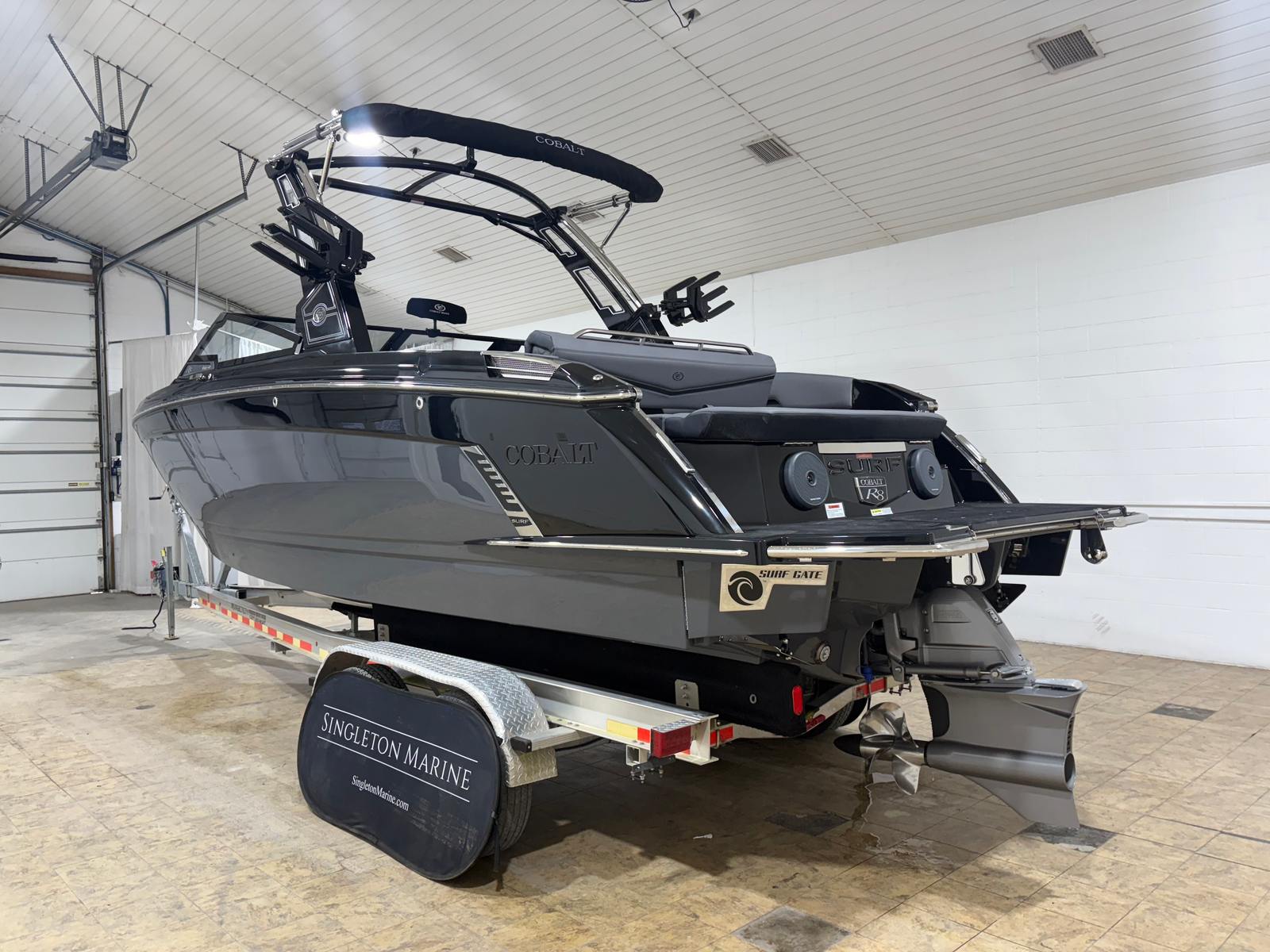 At the heart of the Cobalt R8 Surf is a robust engine boasting 430 horsepower. This single-engine setup is engineered for both power and efficiency, providing smooth acceleration and responsive handling. Whether you’re carving through waves or cruising at a leisurely pace, the R8 Surf delivers a dynamic boating experience that’s second to none.The advanced surf technology integrated into this model ensures optimal wave creation for wake surfing and other water sports. With the Surf Gate Accent in Ebony, you can easily customize your wake for riders of all skill levels, making every outing on the water exciting and memorable.
