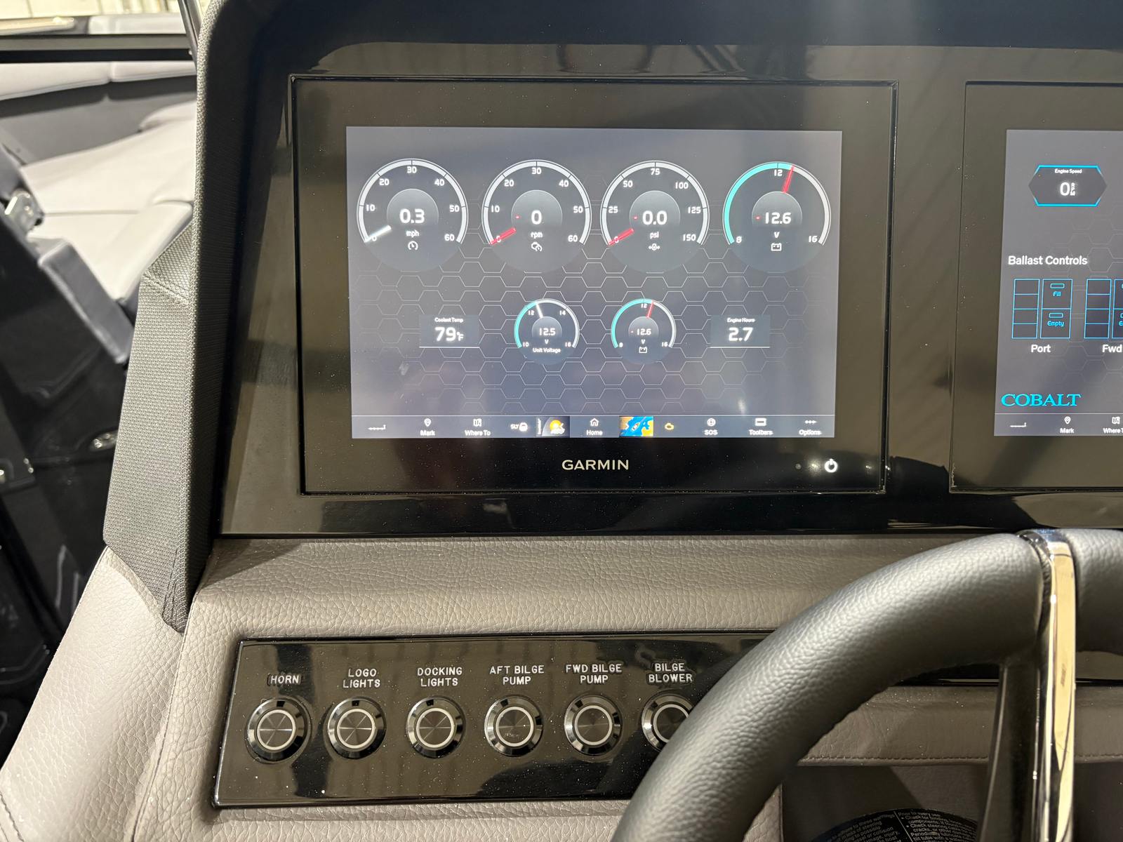 The Cobalt R8 Surf is designed with practicality in mind, making ownership a breeze. The Gunwale Step simplifies boarding, especially when carrying gear or assisting children and guests. The four Fender Clips with Line make docking quick and hassle-free, reducing stress and protecting your investment.The SP BLK Alum Windshield with Model DES offers excellent visibility and protection, ensuring a comfortable ride in varying weather conditions. The Reaview Mirror, PTM with Custom Cover, enhances safety during water sports, allowing the captain to keep an eye on riders at all times.The wireless phone charger/holder adds a modern touch, keeping your devices charged and within reach. The underwater lighting not only enhances the boat’s aesthetic appeal but also improves visibility during nighttime outings, making evening cruises safer and more enjoyable.