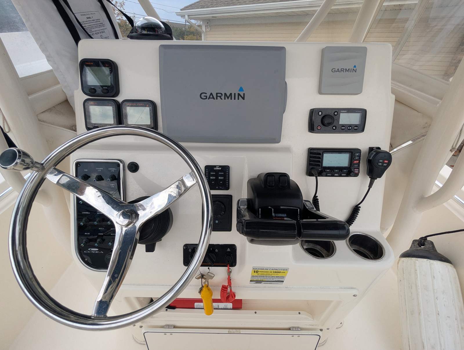 Under the hood, the Cobia 256 CC is powered by twin engines, delivering a combined 300 horsepower. This robust setup ensures that you have all the power you need to reach your favorite fishing spots quickly or enjoy exhilarating rides along the coastline. With 800 engine hours, these engines have proven their reliability and are ready for many more adventures. The dual-engine configuration not only enhances performance but also provides added safety and maneuverability, making docking and navigating tight spaces a breeze. Whether you are chasing game fish offshore or cruising with family and friends, the performance of this Center Console boat is sure to impress.