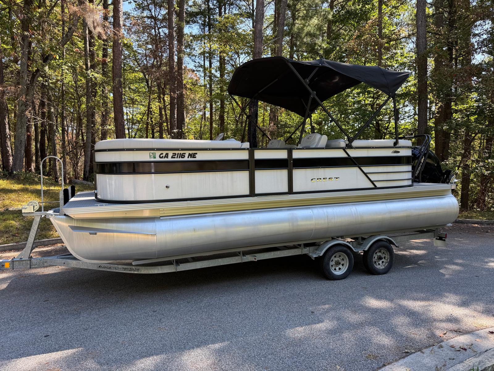 The 2022 Crest 220 DLX is a spacious and versatile pontoon boat, measuring just over 23 feet in length. Its generous size provides ample room for passengers to stretch out and enjoy the ride, making it an excellent choice for social gatherings, leisurely cruises, or adventurous days on the lake. As a used pontoon boat, this model has been well-maintained and is ready to offer years of reliable service to its next owner. The Crest 220 DLX’s sleek design and modern lines ensure you’ll turn heads wherever you go, while its thoughtful layout maximizes both comfort and functionality.