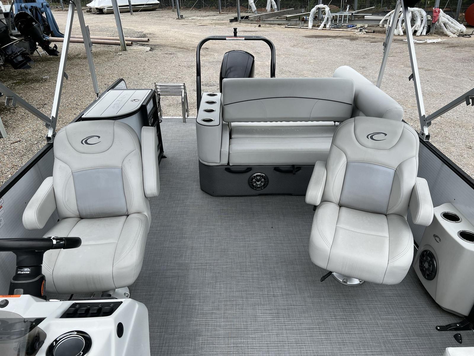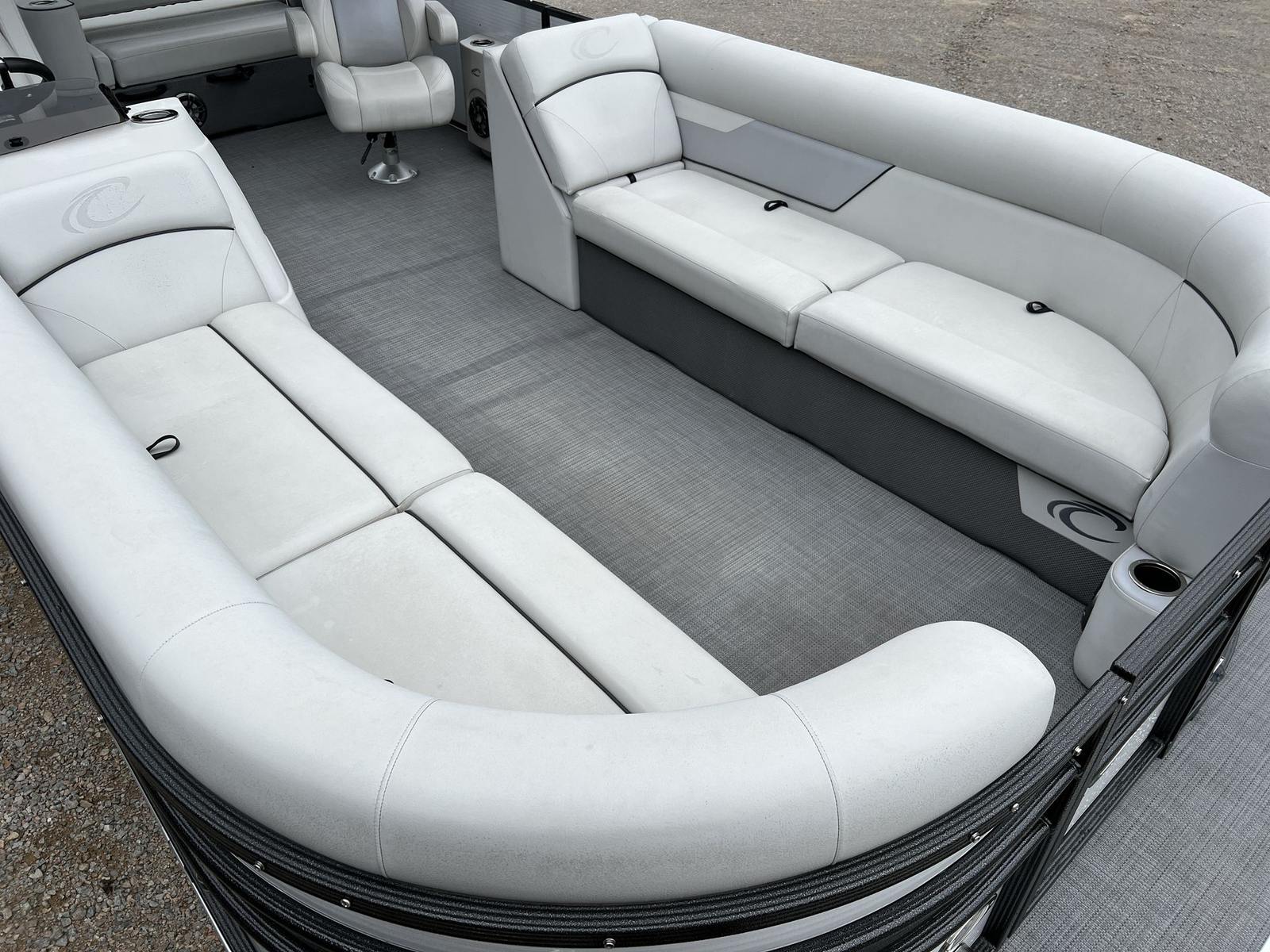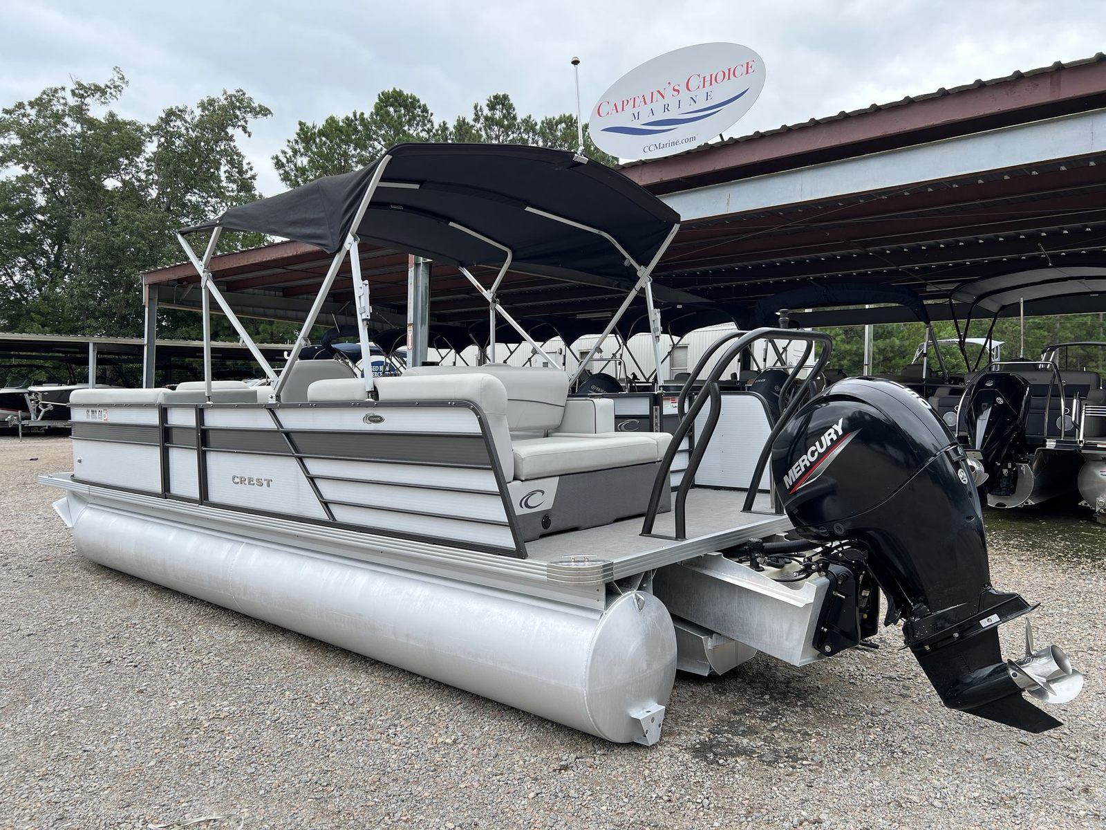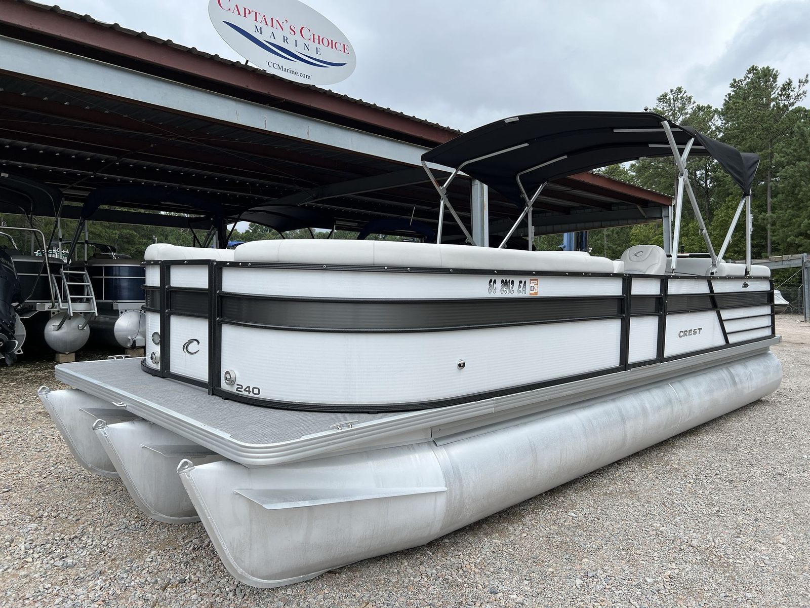 The Crest Classic 240 LX is packed with features that enhance both functionality and leisure. Its 24-foot length provides generous deck space, allowing for comfortable seating and plenty of room to move about. The pontoon’s layout is designed for socializing, with plush seating arrangements that invite relaxation and conversation. The sturdy construction and attention to detail are hallmarks of the Crest brand, ensuring durability and peace of mind on every outing.Special features of the Crest Classic 240 LX include a thoughtfully designed helm, intuitive controls, and ample storage compartments for all your gear. The pontoon’s layout makes it easy to host gatherings, enjoy meals on the water, or simply stretch out and soak up the sun. Every element of this Crest boat for sale is crafted to maximize comfort and convenience, making it a standout choice for boaters who value both style and substance.