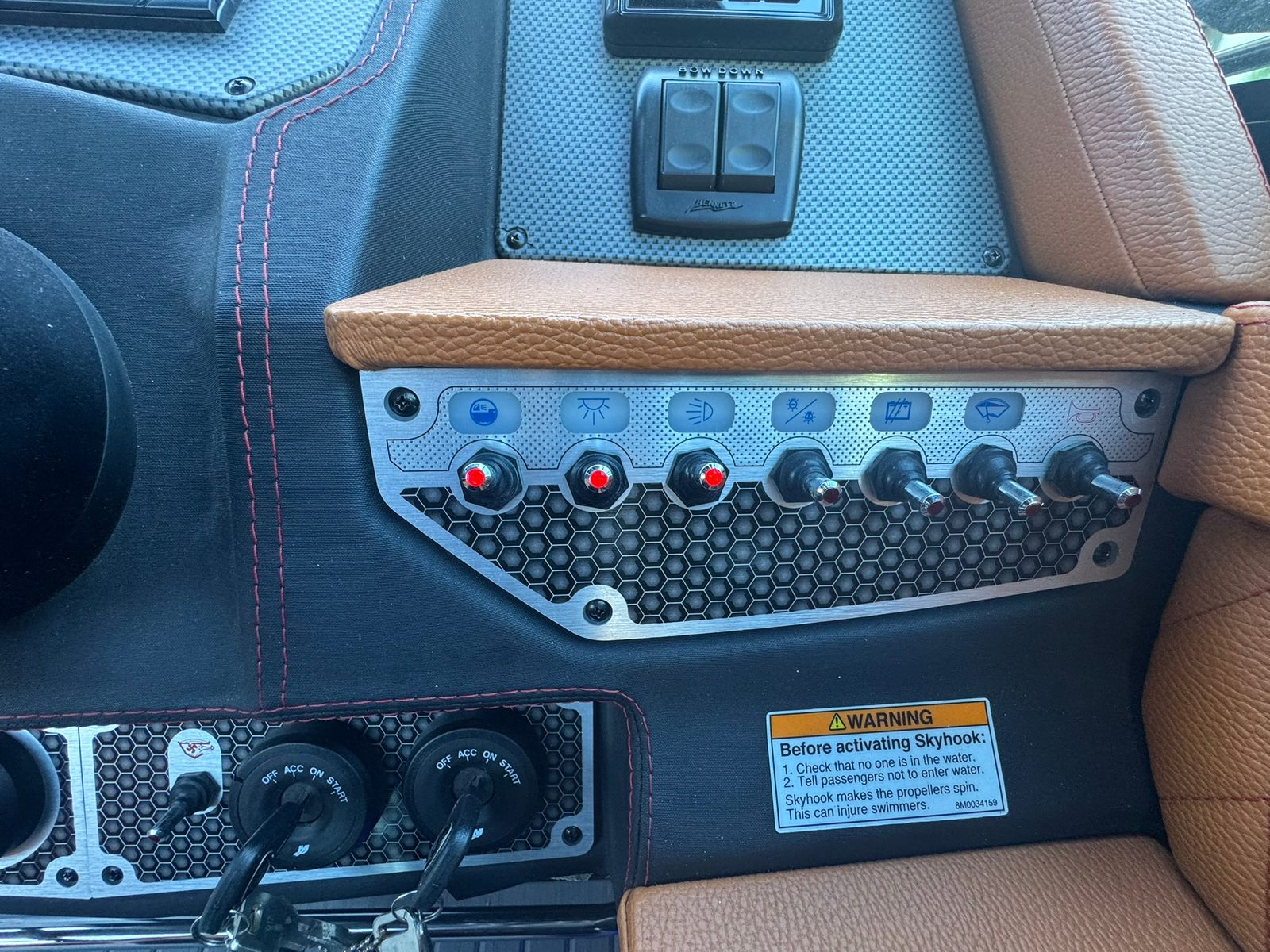 Inside, the boat features full SeaDek flooring and a beautifully finished cabin enhanced with a Lithium power bank that runs the cabin A/C system, making overnights and hot Florida days a breeze—even away from shore power.