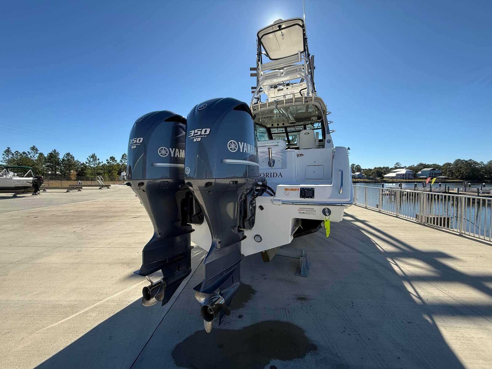This 2015 Everglades 320EX is powered by Yamaha 350s. Port engine has 128 hours with a new powerhead and 874 hours on starboard engine. Engines have transferable third party warranty good through 2/28/2027. This boat is loaded with all the options you would expect. Ready for an overnight weekend trip or a hardcore fishing trip. The boat was professionally detailed including a buff and wax 2/1/2026.