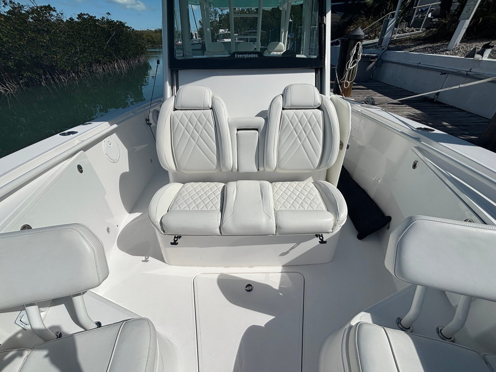 The 2021 Everglades 335 CC shines in a variety of scenarios, making it the ultimate choice for those seeking versatility and performance. For families, this center console boat for sale provides a safe and comfortable environment for day trips, water sports, and picnics on the water. Anglers will appreciate the spacious deck, ample storage for tackle and equipment, and the ability to reach prime fishing grounds quickly and efficiently.If you’re looking for a boat that can handle luxury getaways, the Everglades 335 CC delivers with its stylish design and premium features. Imagine cruising to secluded coves, hosting friends for a sunset cocktail cruise, or exploring new destinations with confidence and style. This Everglades boat for sale is built to adapt to your lifestyle, offering endless possibilities for fun and adventure.