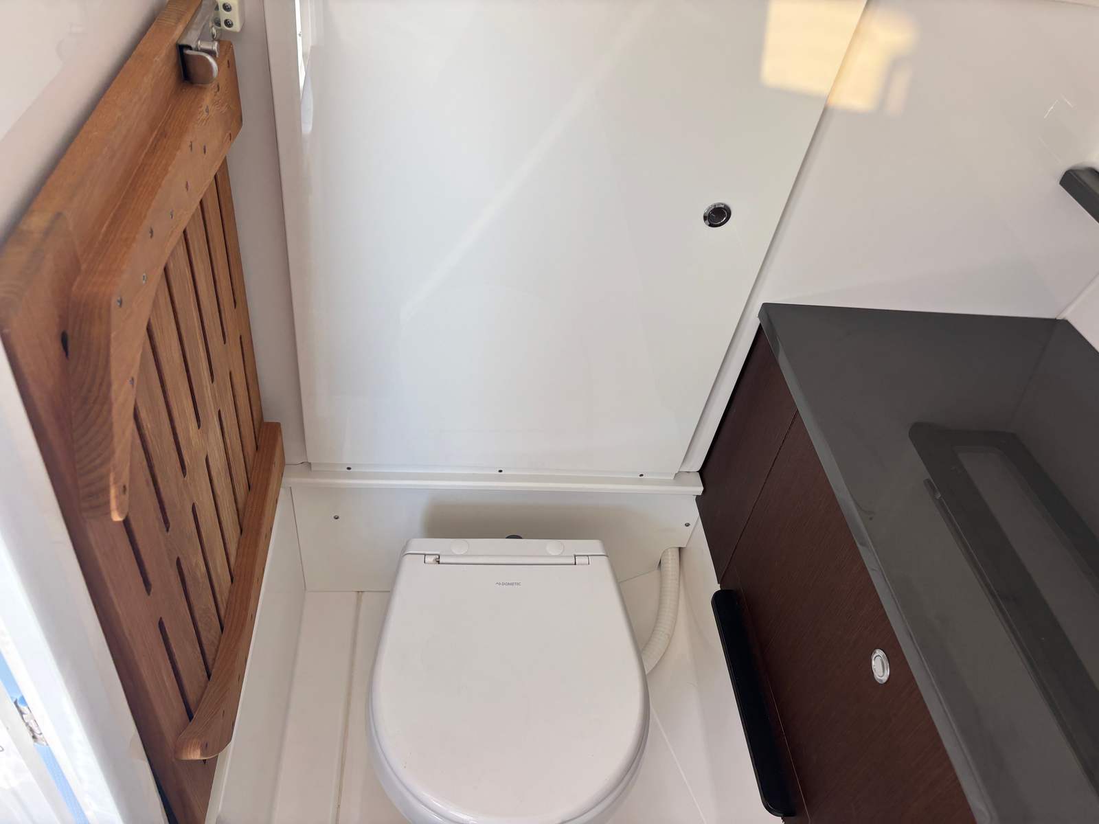 •Double wide companion way seat to port with chaise conversion •Built in port side lounge with inboard facing jump seat