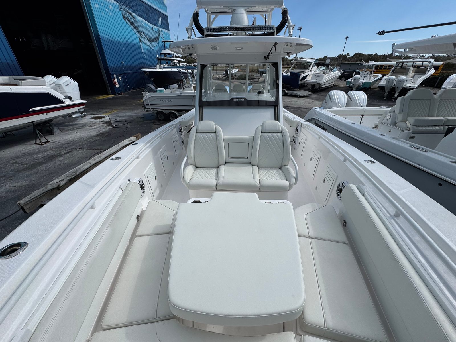 Immaculate! Seakeeper !!Inside dry stored since new! This beautiful Everglades 365cc with full upper station has been stored inside our state of the art dry stack since new and it shows! Extremely low hours (348) on her preferred Twin Yamaha F425's with extended warranties until 06/25/2026, this loaded out machine has been very lightly used and hardly ever fished. This beautiful boat is painted with Awlgrip in a striking Speedblue Metallic color with matching painted engines. She is loaded with every option and is priced to sell immediately.