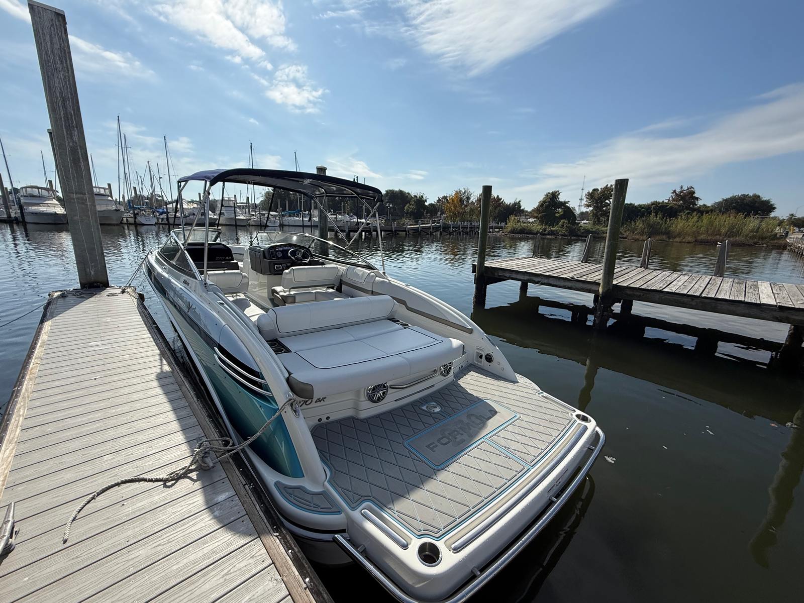 Owning a Formula 270 BR means embracing a lifestyle of fun, relaxation, and adventure. This bowrider boat for sale is designed to maximize enjoyment on the water, with comfortable seating arrangements that encourage conversation and connection. The open layout allows for easy movement throughout the boat, making it simple to transition from sunbathing on the bow to enjoying refreshments in the cockpit. The 270 BR’s thoughtful design ensures that every passenger can find their perfect spot to unwind, whether you are anchored in a quiet cove or cruising along the shoreline.The 430-horsepower engine provides the thrill of speed and the confidence to explore new destinations. With its responsive handling and smooth ride, the Formula 270 BR is equally suited for water sports, leisurely cruises, or spirited runs across the lake. The boat’s versatility means you can tailor each outing to your preferences, creating lasting memories with family and friends.