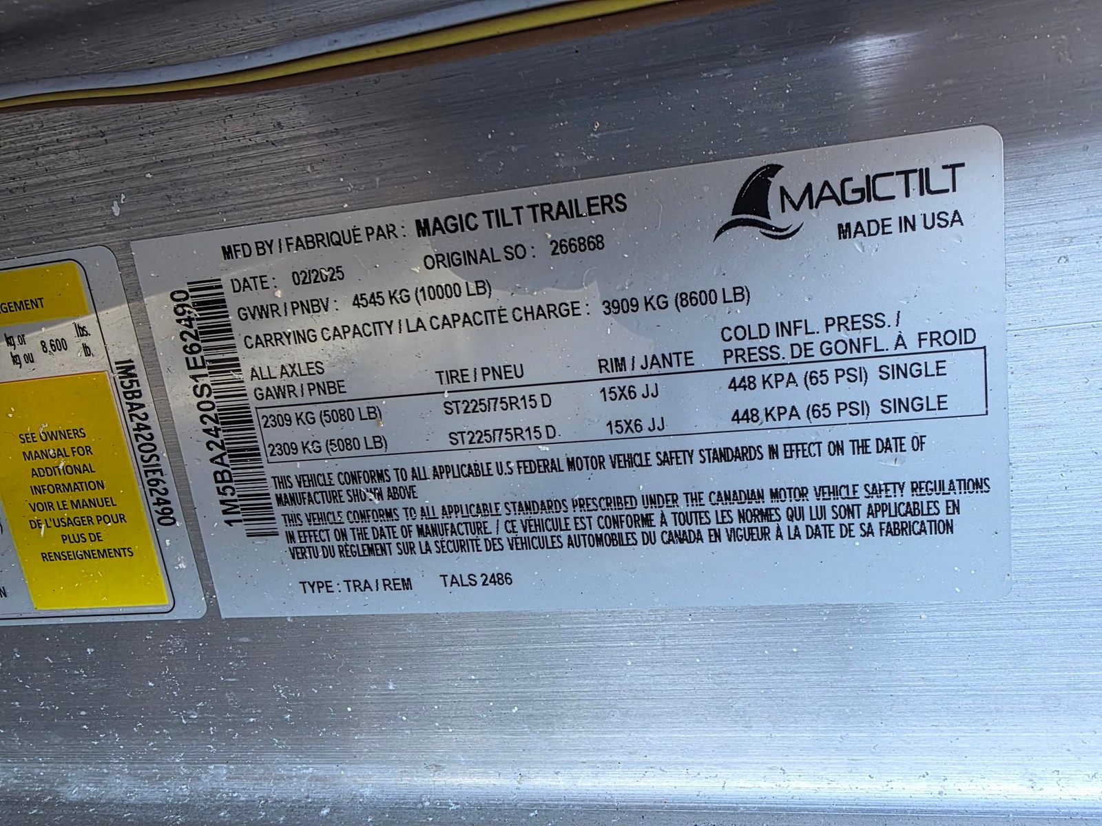 Trailer separate, but will consider selling with the vessel.
