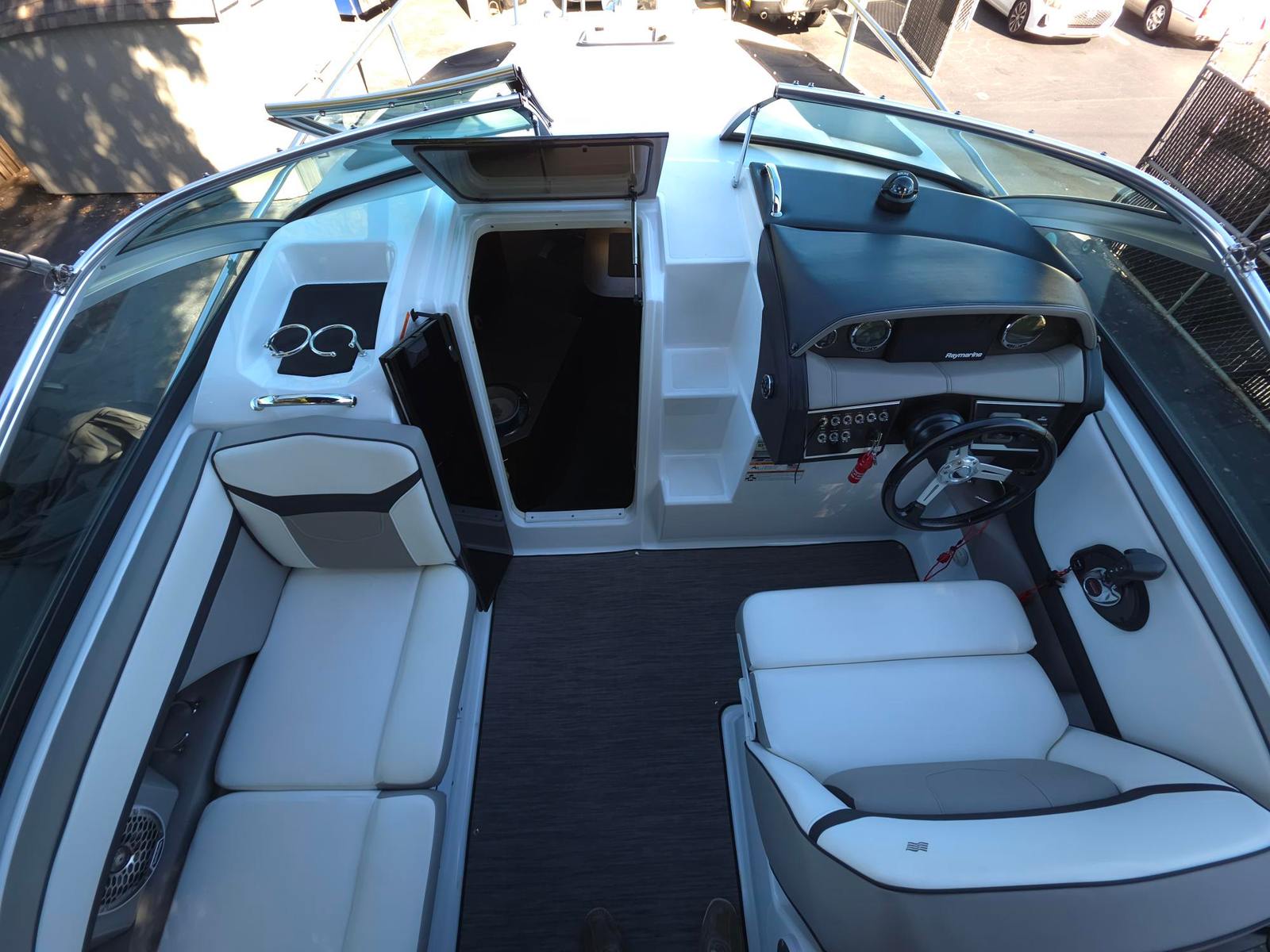 The Four Winns V255 is packed with features that enhance your time on the water. Its spacious bowrider layout provides ample seating for guests, allowing everyone to relax and soak up the sun. The ergonomic helm is designed for intuitive control, giving the captain confidence and ease while navigating. The V255’s 25-foot length offers a perfect balance between maneuverability and space, making it ideal for both intimate gatherings and lively parties.Special features of the Four Winns V255 include a thoughtfully designed cockpit with comfortable seating, a stylish and functional dashboard, and plenty of storage for all your gear. The open bow area invites socializing and sunbathing, while the aft seating is perfect for enjoying the view or preparing for a swim. Every detail is crafted to maximize comfort and convenience, ensuring that every trip is as enjoyable as possible.