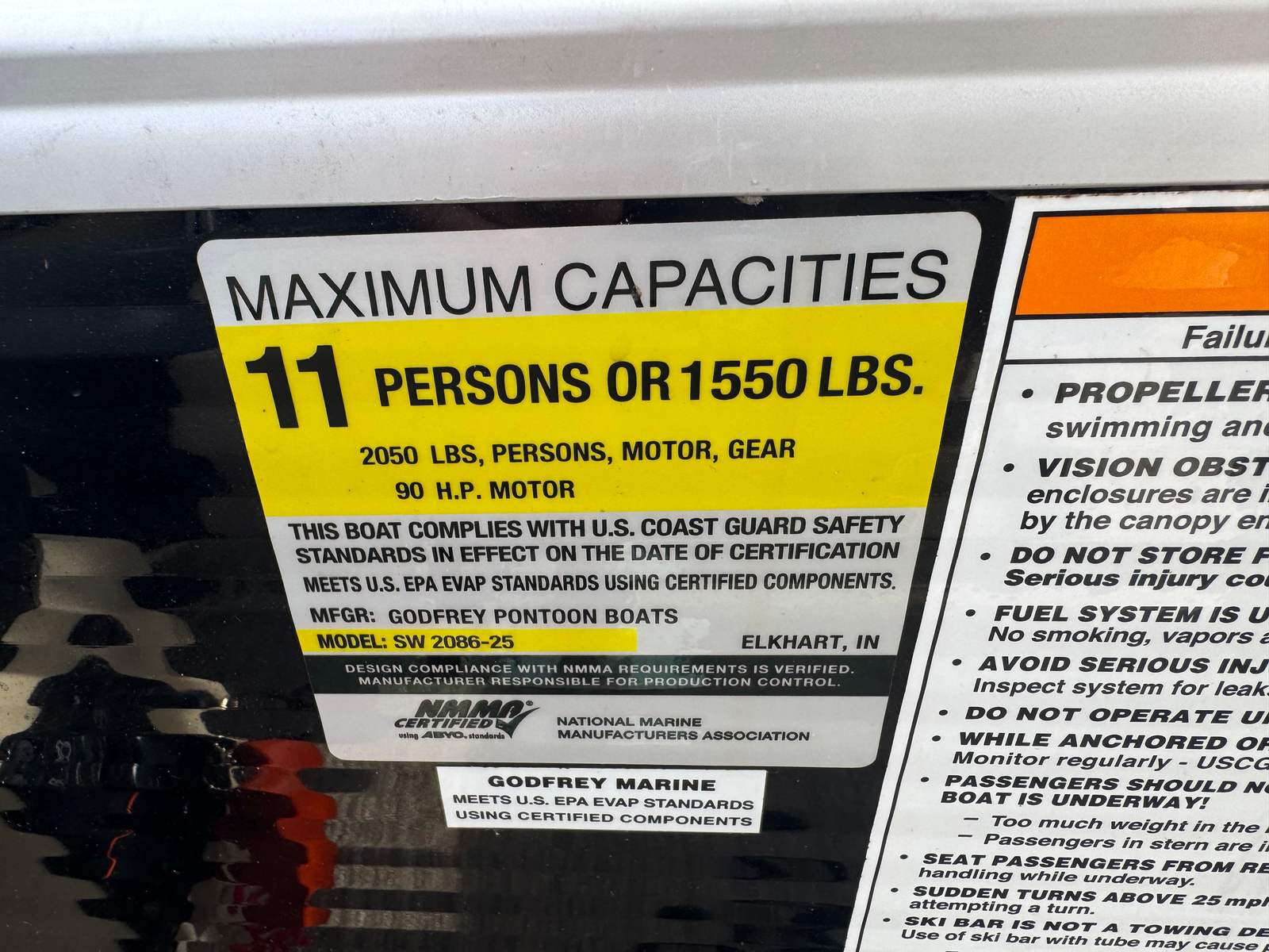 Overall, the 2023 Godfrey Sweetwater 2086 with a 90 horsepower Yamaha outboard represents an excellent combination of comfort, performance, and value. It offers the space to bring family and friends together, the power to enjoy a variety of activities, and the quality construction needed for years of dependable use. Whether you’re cruising, relaxing, or creating new memories on the water, this pontoon is ready for the adventure.