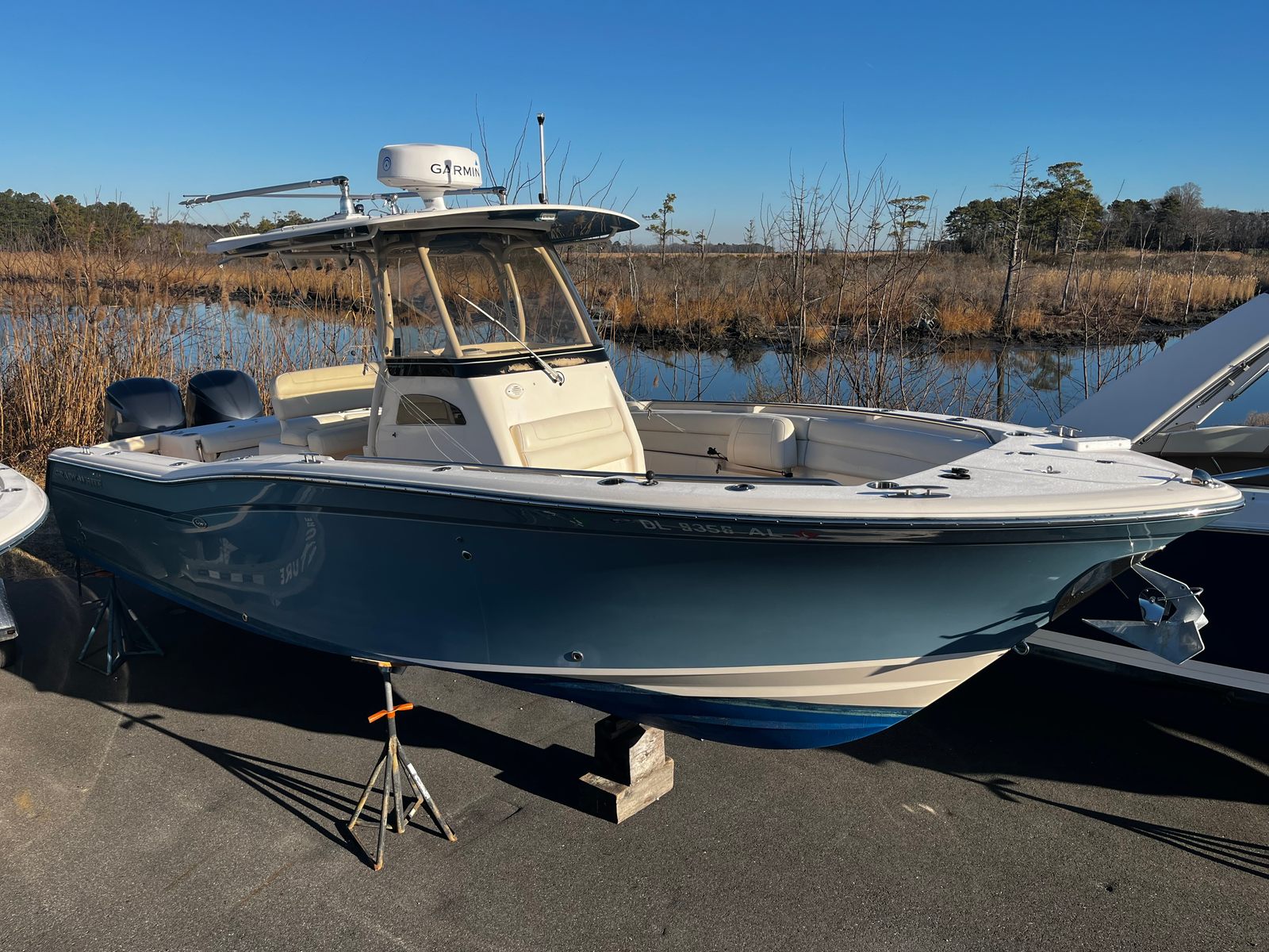 2019 Grady White 271 Canyon powered by twin Yamaha F300 HP motors with 1,174 hours. A proven offshore performer known for its exceptional ride, layout, and fishing capability, this 271 Canyon has been thoughtfully equipped and maintained by Taylor Marine Centers Since New.
