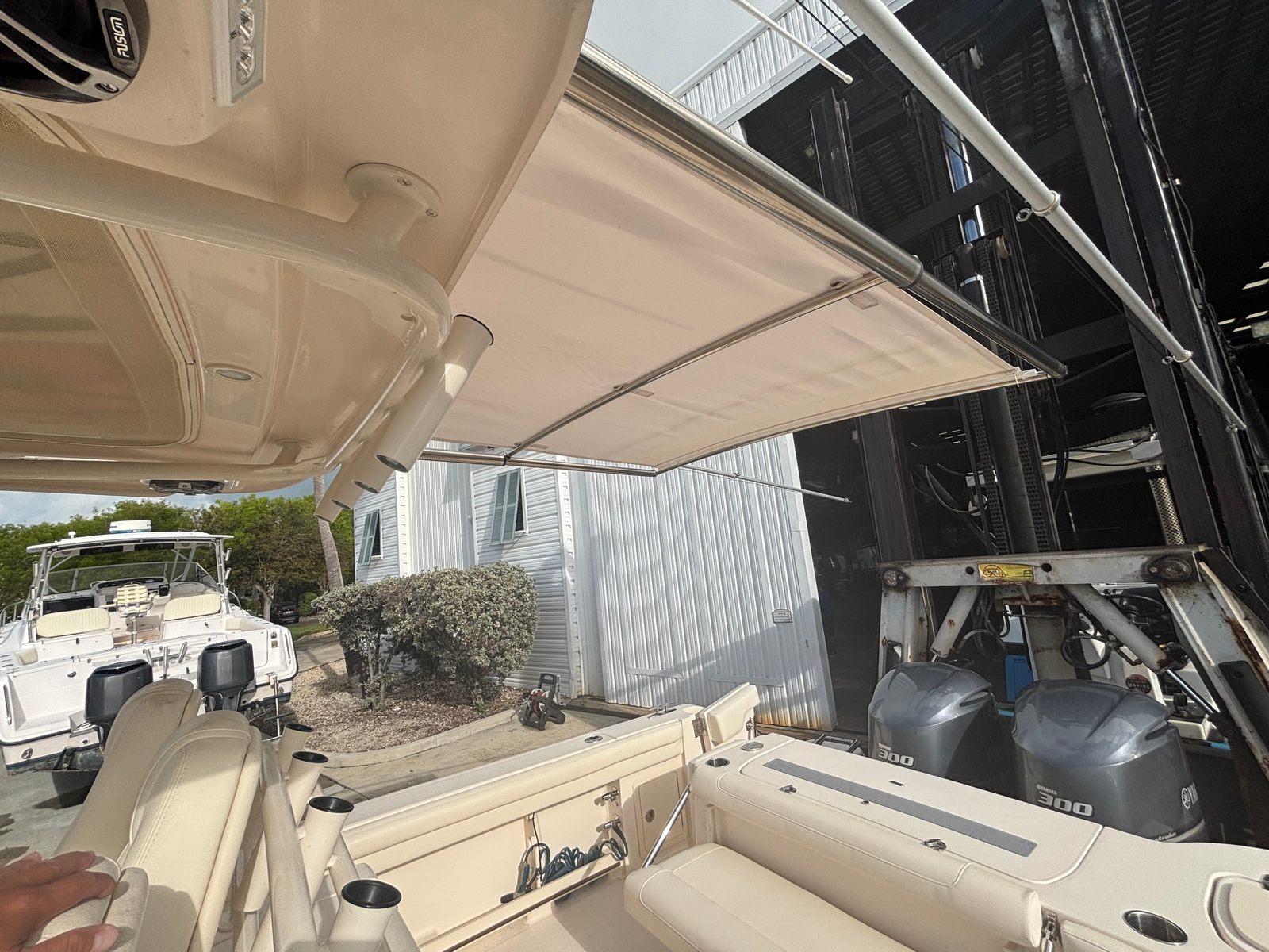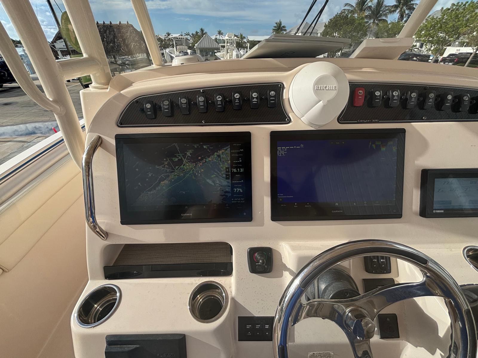 Equipped with twin engines delivering a combined 600 horsepower, the Grady-White Canyon 326 is engineered for exhilarating performance. With 675 engine hours, these reliable powerplants offer the perfect balance of speed, efficiency, and durability. Whether you are heading offshore for a day of fishing or cruising along the coastline with family and friends, this Center Console boat for sale provides the power and responsiveness you need for a smooth and enjoyable ride.The twin-engine setup not only ensures impressive acceleration and top-end speed, but also enhances maneuverability and control, making docking and navigating tight spaces a breeze. The Canyon 326’s hull design further contributes to its exceptional handling, allowing you to tackle a variety of water conditions with confidence.