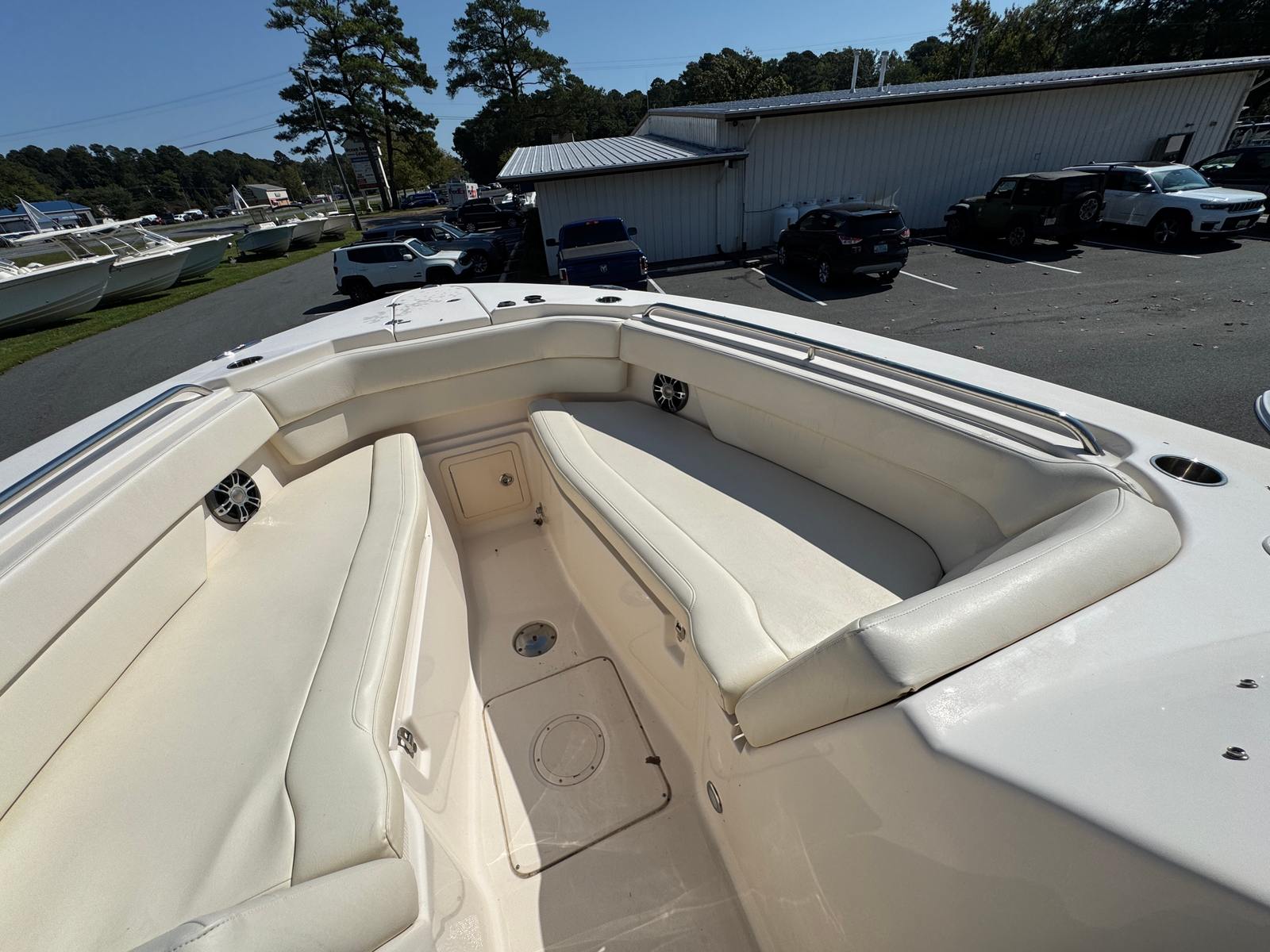 Powering the Grady-White Freedom 307 are two robust engines, delivering a combined 600 horsepower. With 589 engine hours, these motors have proven their reliability and are ready for many more adventures. The dual engine setup ensures smooth acceleration, impressive top speeds, and effortless handling, whether you’re cruising along the coast or heading offshore for a day of fishing. The Freedom 307’s hull design is engineered for stability and efficiency, providing a comfortable ride even in choppy conditions. Experience the thrill of responsive performance and the confidence that comes with owning a Grady-White boat for sale.