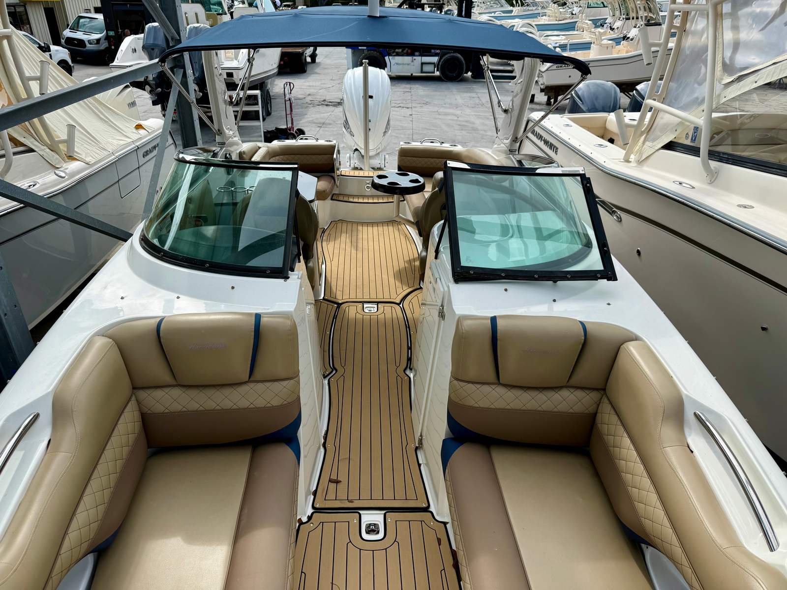 She is powered by a Yamaha 425HP outboard with approximately 250 hours, delivering strong, reliable performance whether you’re cruising the intracoastal, pulling water toys, or making a quick run to your favorite sandbar. At the helm, the boat is equipped with Yamaha CL7 digital gauges, providing clear, easy-to-read engine data and system information for confident operation.