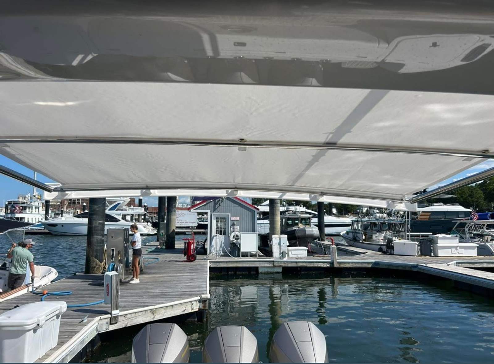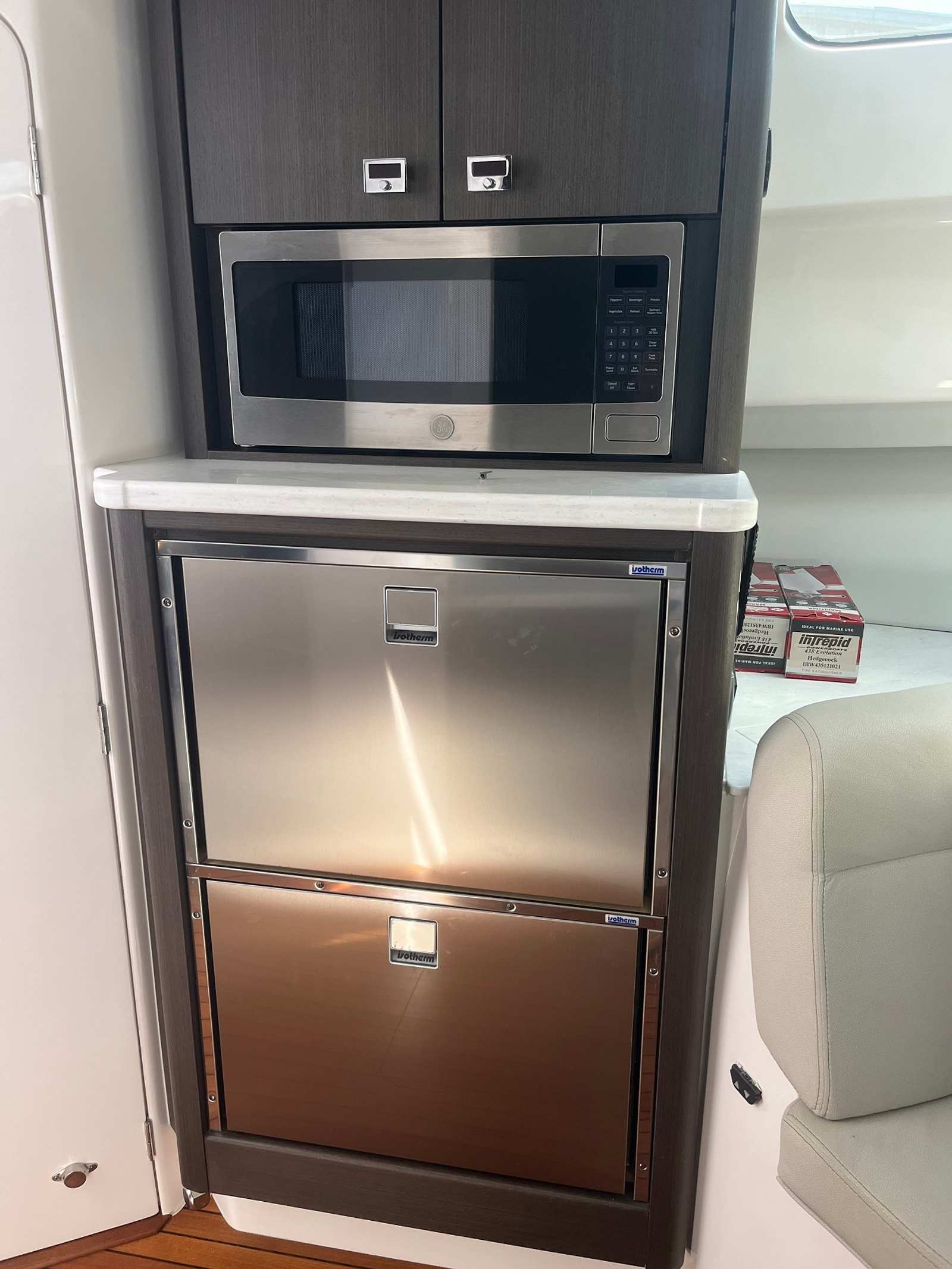 Powering the Intrepid 438 Evolution are three high-performance engines, delivering a combined 1350 horsepower. With only 492 engine hours, these motors promise plenty of life and adventure ahead. The triple engine configuration ensures impressive speed, smooth acceleration, and responsive handling, making this yacht a pleasure to captain. Whether you’re navigating open waters or maneuvering in tight marinas, the Intrepid 438 Evolution offers the kind of performance that sets it apart from other yacht boats for sale. The advanced propulsion system not only provides exhilarating speed but also enhances fuel efficiency, allowing you to enjoy longer journeys with fewer stops.