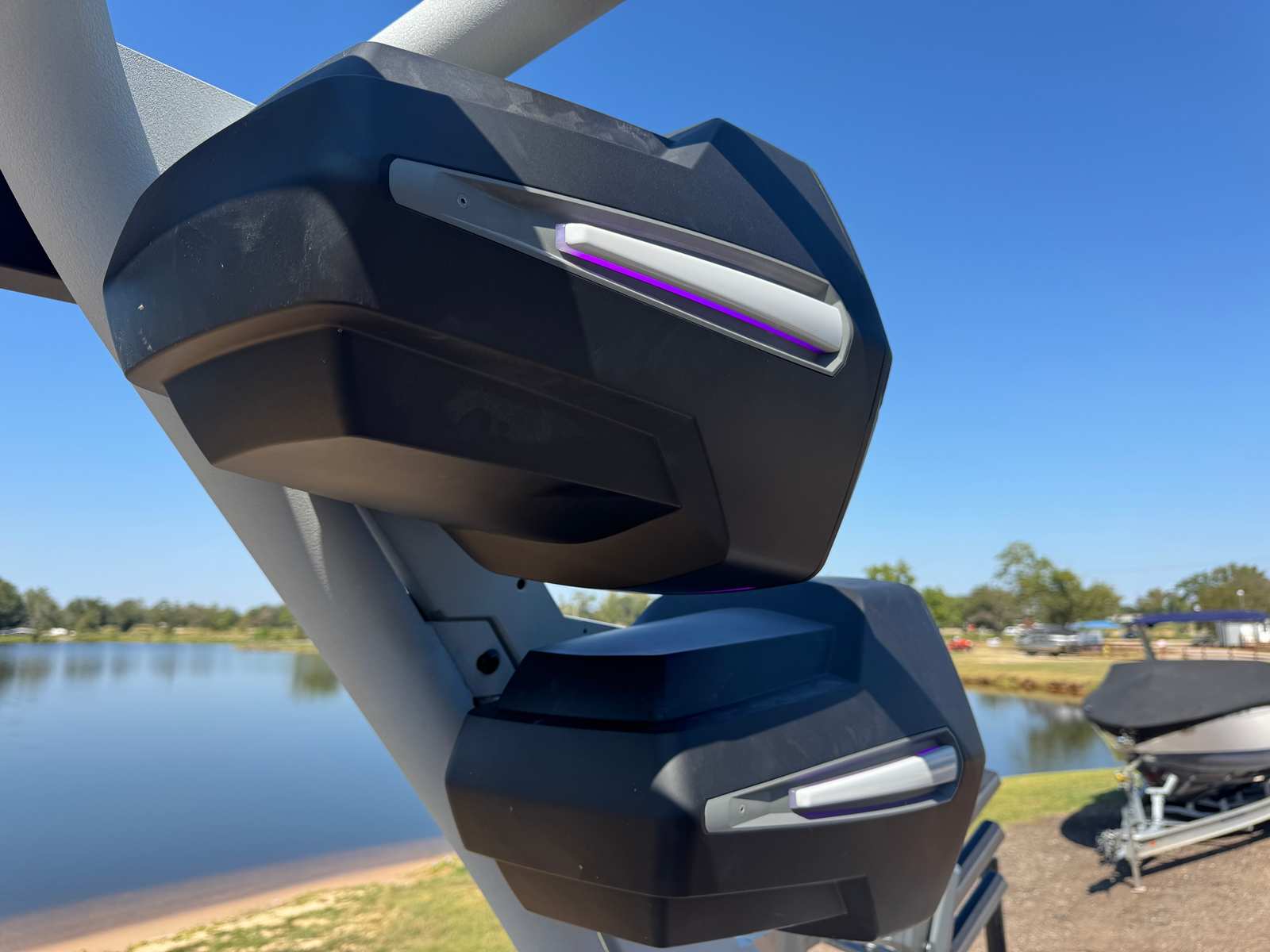 At the heart of the Malibu M230 is the powerful Malibu Monsoon LT4 engine, delivering an impressive 606 horsepower. With only one engine hour, this boat is virtually untouched and ready to unleash its full potential. The 250a alternator ensures reliable power delivery, supporting all onboard systems and accessories. The advanced exhaust surf pipe not only enhances performance but also contributes to a quieter, more enjoyable ride for everyone onboard. Whether you are carving perfect wakes or cruising at speed, the M230’s performance is both exhilarating and smooth, making it a top choice among Ski & Wakeboard boats for sale.