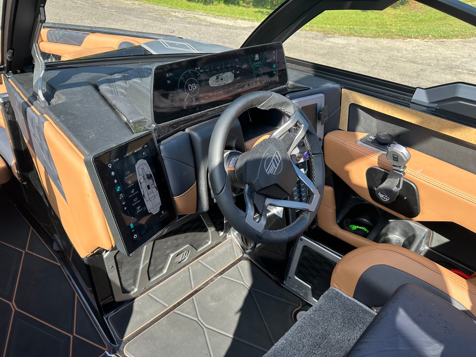 Beyond its impressive performance and luxury features, the Malibu M242 is designed with practicality in mind. The ample storage options, including dedicated spaces for ropes and surfboards, keep your gear organized and out of the way. The nonskid deck ensures safety for all passengers, even when the deck is wet. LED docking lights make it easy to approach docks and marinas after sunset, while the fire suppression system adds an extra layer of security.The efficient single-engine design not only delivers outstanding horsepower but also helps optimize fuel consumption, making your adventures more economical. The boat’s manageable length and advanced docking features simplify maneuvering in tight spaces, so you can spend less time worrying about logistics and more time enjoying the water.