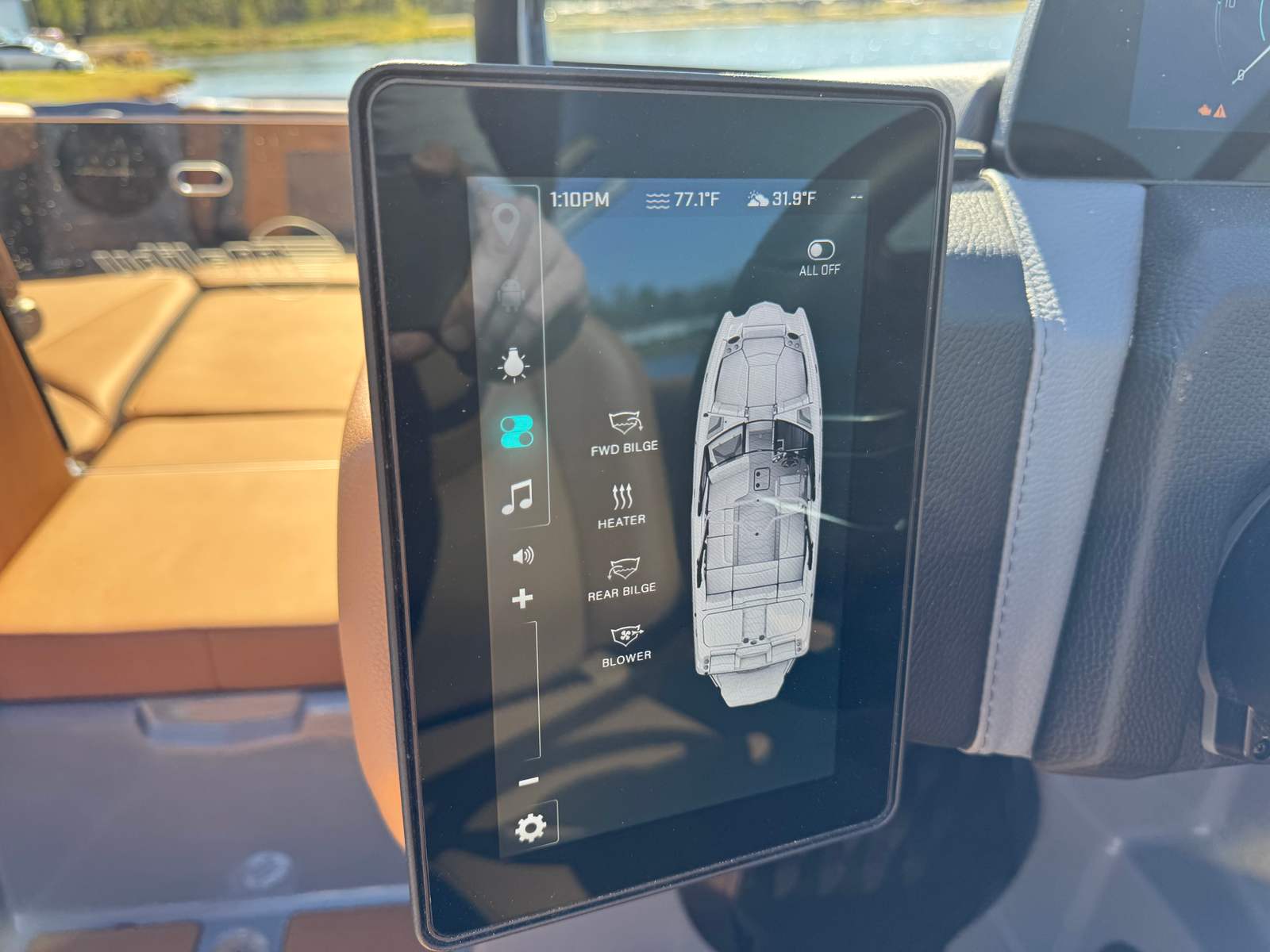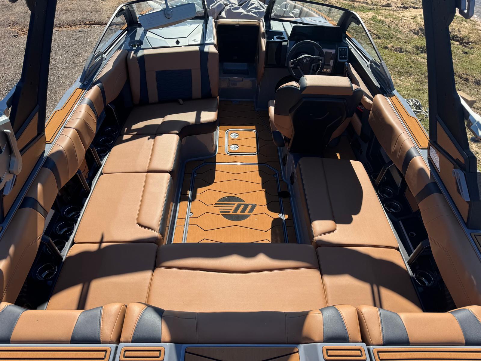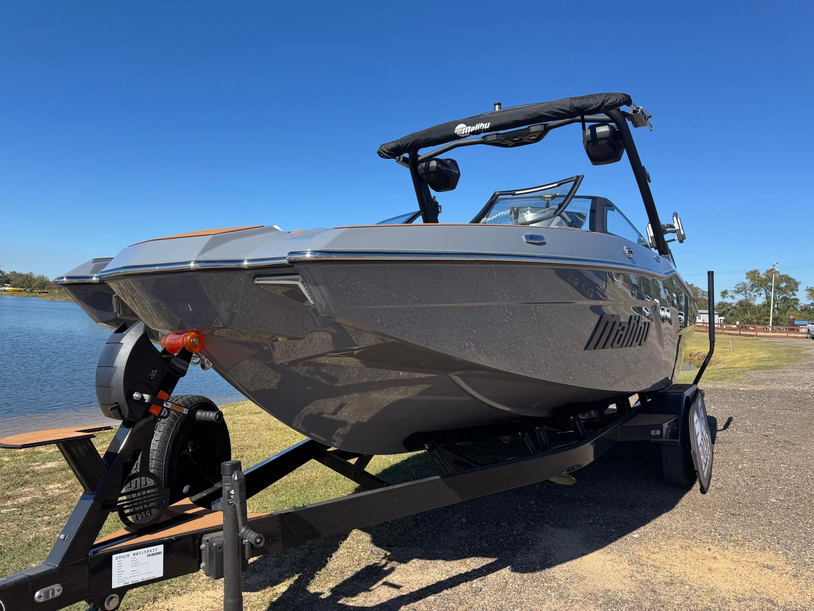 This Malibu boat for sale is loaded with special features that set it apart from the competition. The Exterior Color Upgrade and Interior Color Upgrade allow you to showcase your personal style, while the Ebony-Wakesetter Hull Rear Graphics and Ebony-Wakesetter Hull Side Graphics add a bold, distinctive look that’s sure to turn heads at the marina. The CS Boat Cover with APS 3 and Swimboard Cover provides superior protection for your investment, keeping your boat in top condition year-round.For those who love surfing, the CS Gen II Surf Dual Coverage Bimini with rope and surf board storage offers unmatched convenience and versatility. This innovative bimini system not only provides shade on hot days but also keeps your gear organized and easily accessible. The Heater 3-Outlet ensures comfort during cooler mornings or late-season rides, allowing you to extend your boating season and keep everyone cozy onboard.The Sound System - MXZ Pack delivers crystal-clear audio, transforming your boat into a floating party. Whether you’re relaxing at anchor or pumping up the energy for a wakeboarding session, this premium sound system ensures your favorite tunes are always part of the experience.