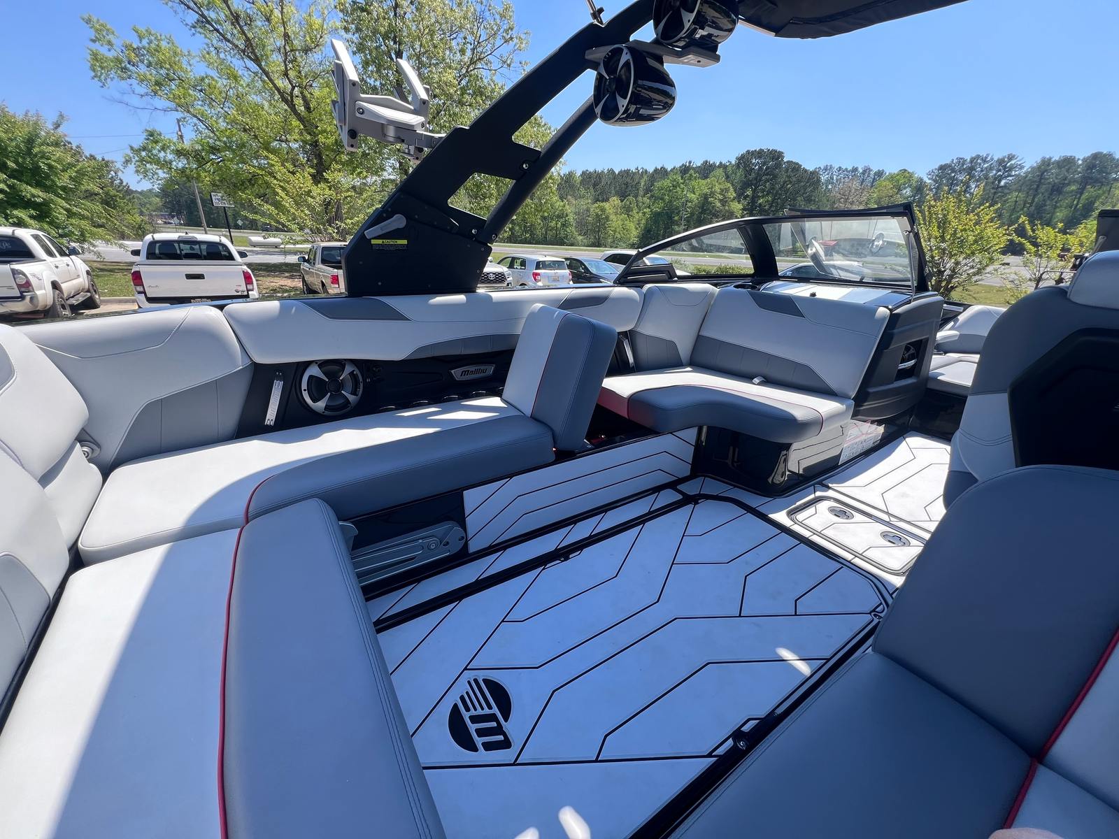 The Malibu Wakesetter 23 LSV is not just about high-octane fun; it is also designed with practicality in mind. The 23-foot length makes it easy to dock and maneuver, even in tighter spaces, while the single engine setup simplifies maintenance and operation. Ample storage compartments throughout the boat provide plenty of space for gear, life jackets, and water toys, keeping the deck clutter-free and organized. The efficient engine helps you make the most of every outing, maximizing your time on the water and minimizing trips to the fuel dock. Whether you are planning a full day of water sports or a relaxing cruise, this Malibu boat for sale is equipped to handle it all with ease.