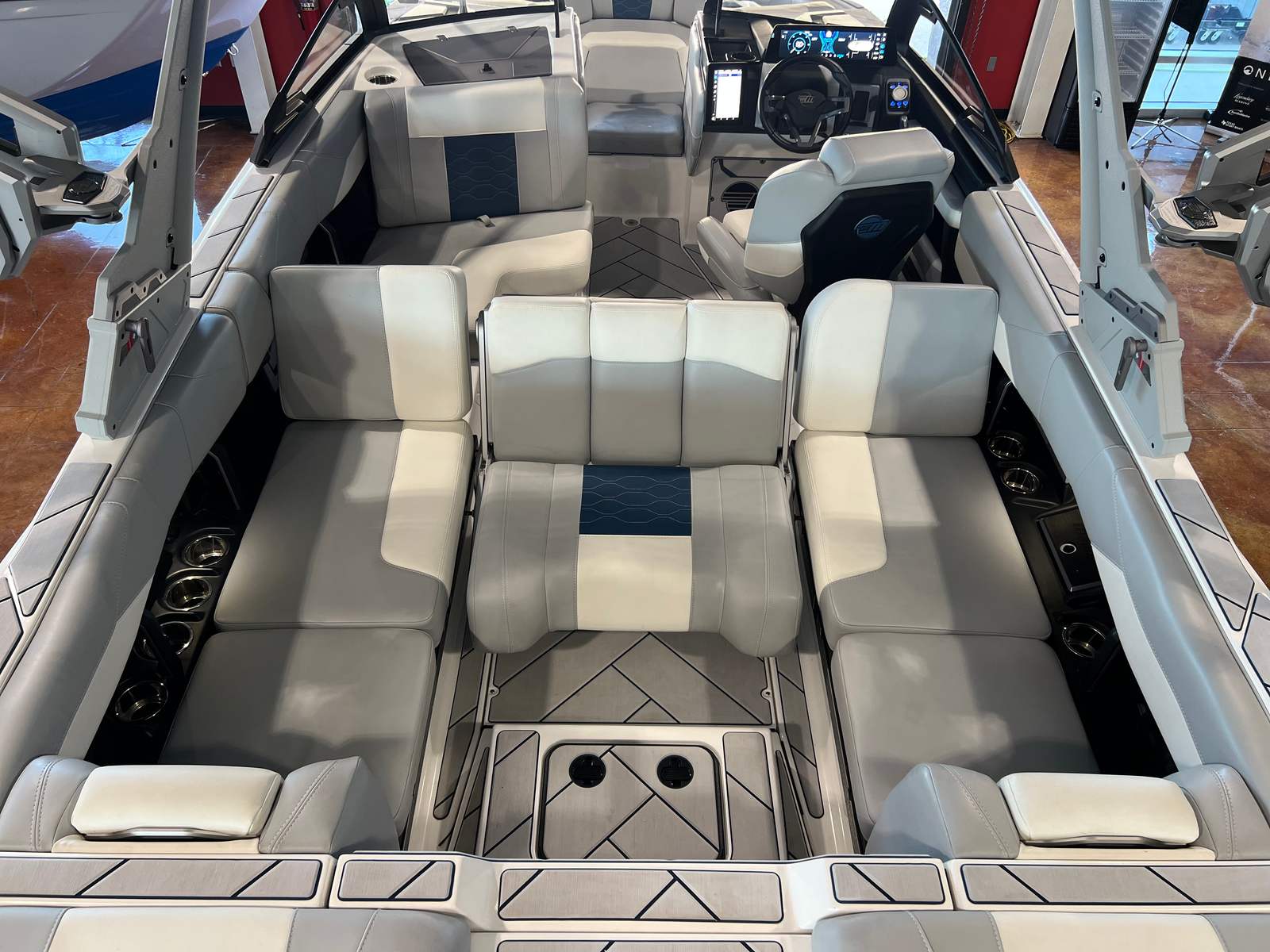 The 2025 Malibu Wakesetter 23 LSV is engineered for fun and functionality, with a suite of features designed to enhance your boating experience. Its spacious 23.58-foot layout provides plenty of room for passengers to relax, socialize, and gear up for action. The hull design is optimized for creating customizable wakes and waves, catering to riders of all skill levels. The boat’s advanced wake-shaping technology allows you to fine-tune the size and shape of the wake, ensuring an ideal ride for wakeboarders, surfers, and skiers alike.The ergonomic cockpit layout ensures that the captain has full control, with intuitive controls and clear sightlines for safe navigation. Premium seating and ample storage compartments make it easy to stow all your water sports equipment, personal items, and refreshments, keeping the deck clutter-free and comfortable. The Wakesetter 23 LSV’s stylish design, with sleek lines and modern accents, ensures you’ll turn heads at the dock and on the water.
