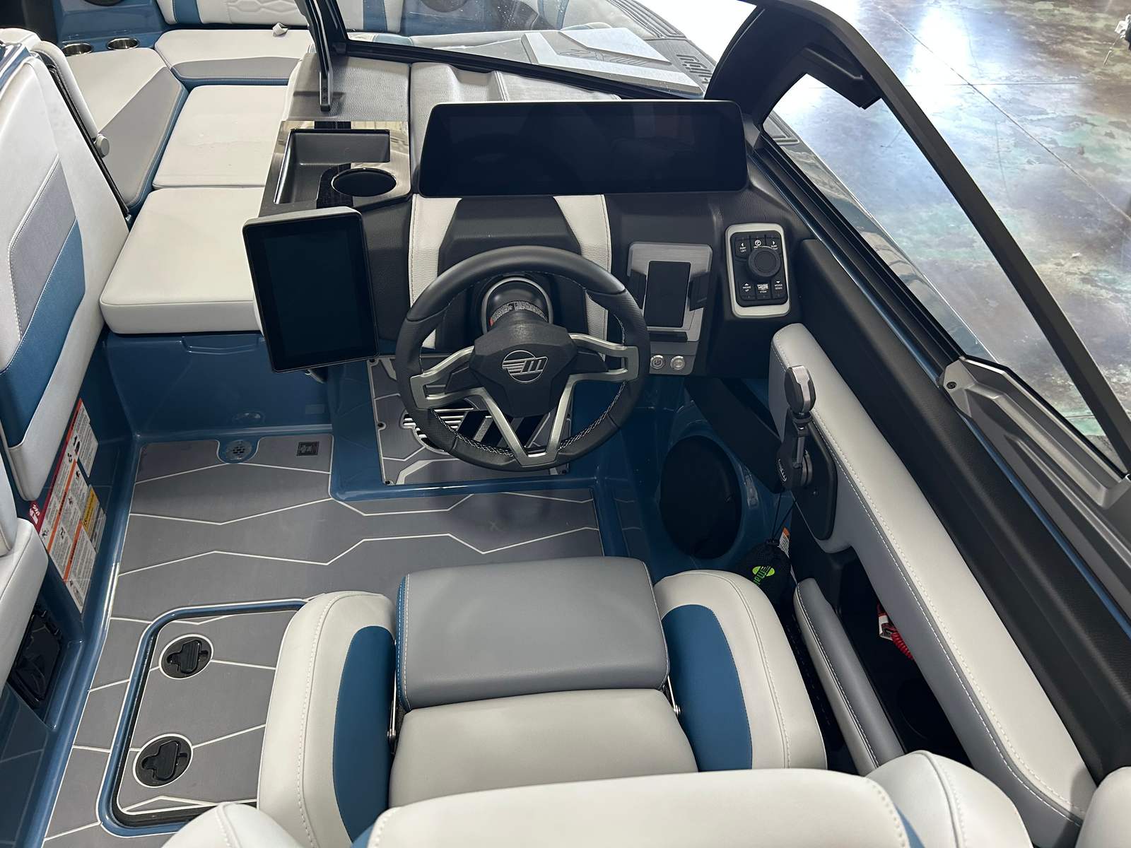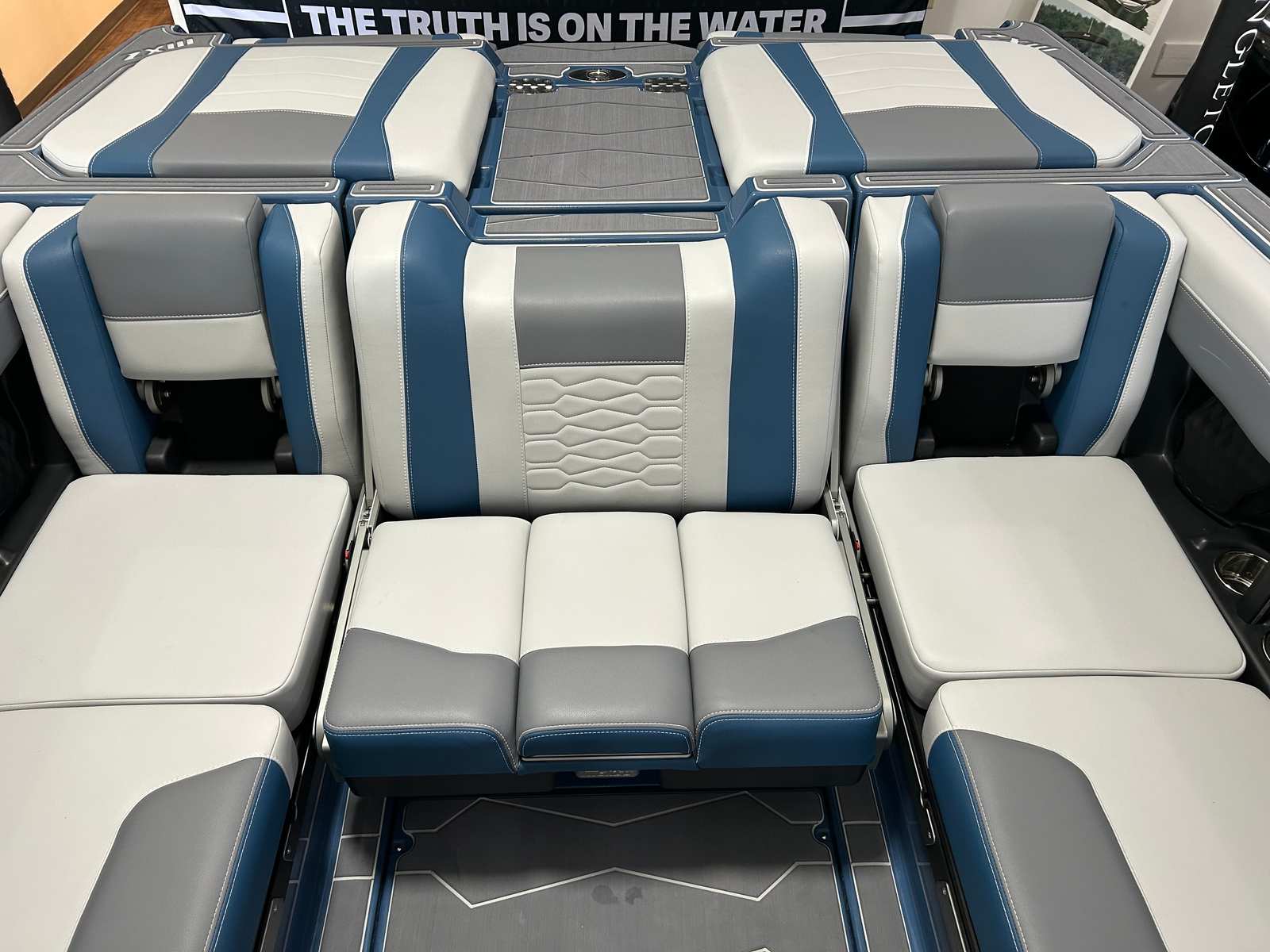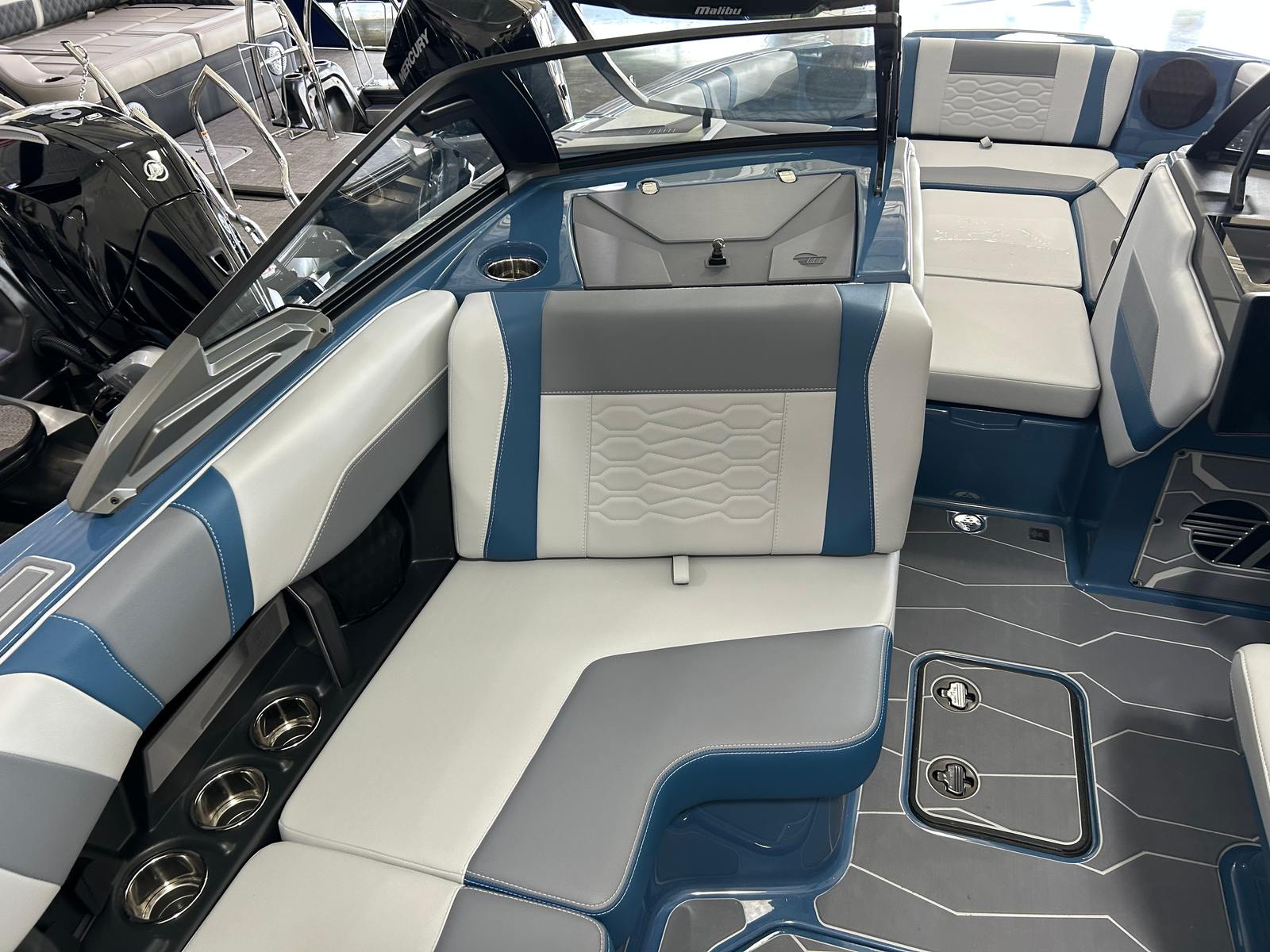 The Malibu Wakesetter 23 MXZ is as practical as it is fun. The composite flooring system is easy to clean and maintain, ensuring your boat looks great season after season. The water-cooled shaft seal and sound suppression system contribute to a quieter, more efficient ride, reducing maintenance needs and enhancing comfort. The 250a alternator provides ample power for all your electronic devices, from GPS and navigation systems to onboard entertainment, so you can stay connected and entertained throughout your adventures.Storage is thoughtfully integrated throughout the boat, making it simple to stow gear, life jackets, and watersports equipment. The advanced ballast system allows for quick adjustments, so you can switch between activities with minimal downtime. The rudder position sensor and responsive steering make docking and trailering straightforward, even for less experienced boaters.