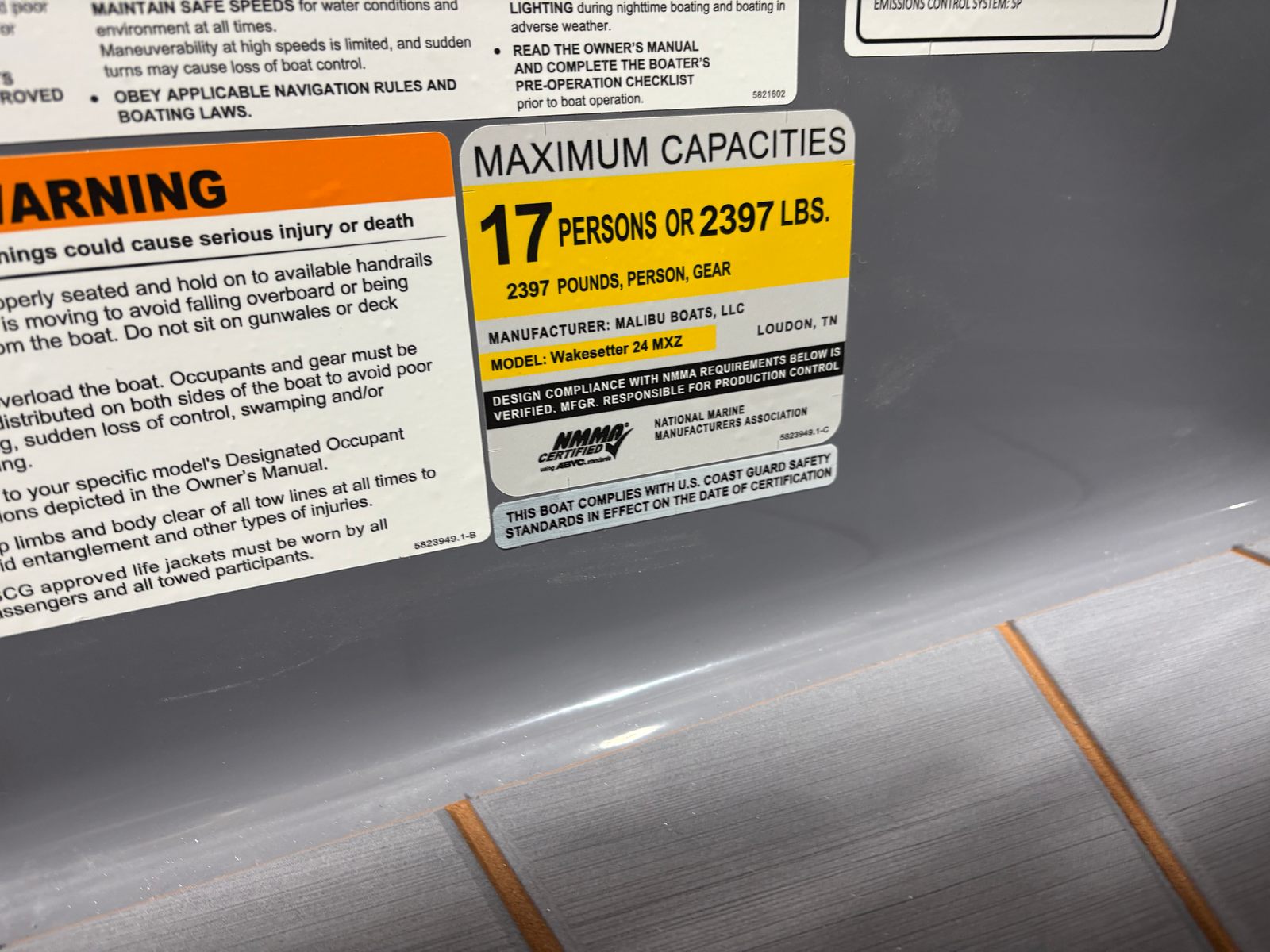 At the heart of the Malibu Wakesetter 24 MXZ is the powerful Malibu Monsoon M6DI engine, delivering an impressive 460 horsepower. This robust engine ensures that you have all the muscle you need for wakeboarding, waterskiing, and surfing, providing smooth acceleration and reliable performance every time you hit the throttle. The Standard - 17 x 155 - 3077 propeller is engineered for optimal thrust and efficiency, allowing you to carve through the water with precision and control. The 250a Alternator keeps your onboard electronics powered, so you can enjoy your favorite tunes and stay connected all day long. The Exhaust - Surf Pipe enhances the wake experience while minimizing noise, ensuring a quieter and more enjoyable ride for everyone onboard.