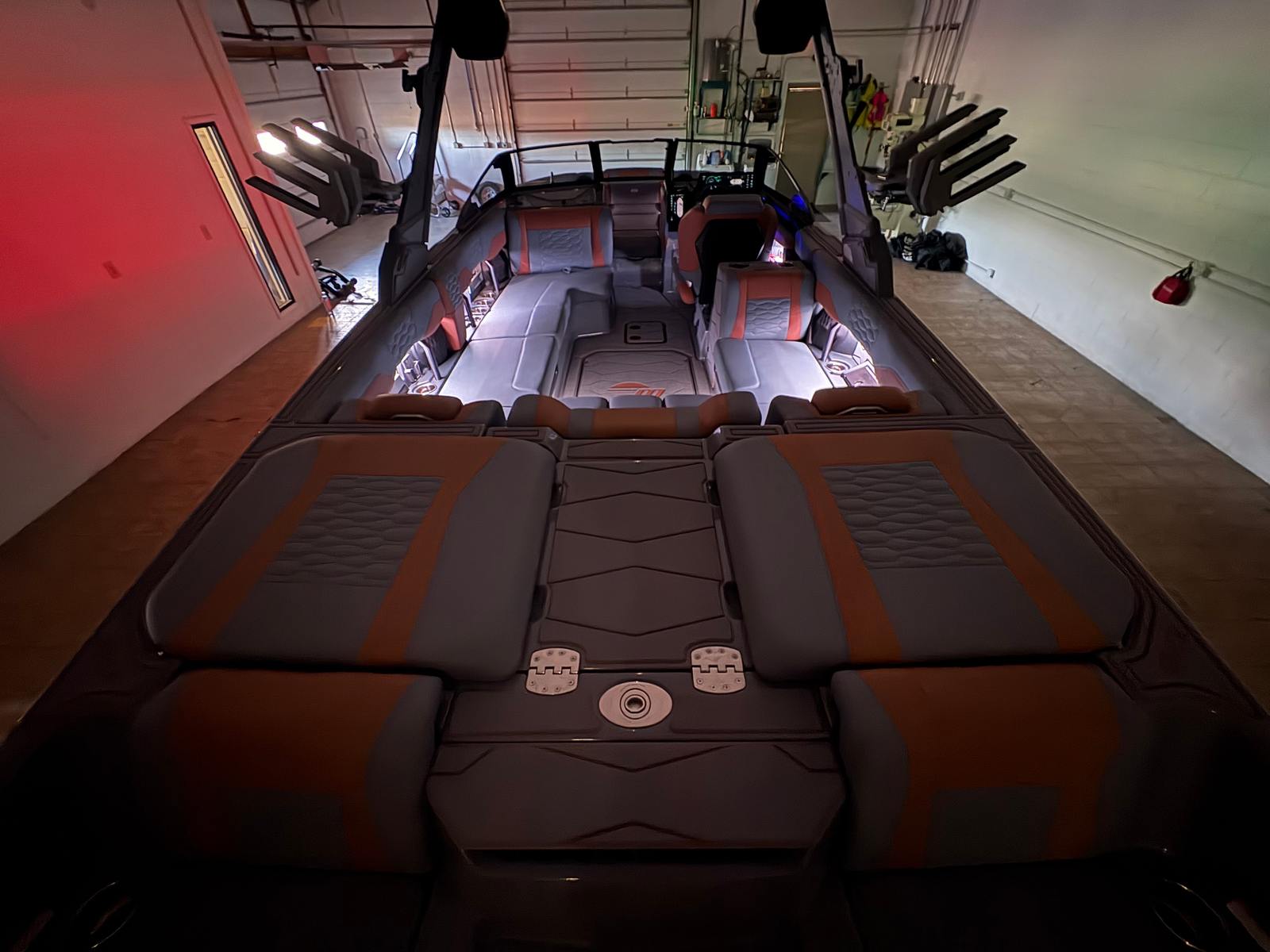 Beyond its performance and style, the Malibu Wakesetter 24 MXZ is built for practical, everyday enjoyment. The ample storage options, including dedicated spaces for ropes and boards, keep your gear organized and easily accessible. The boat’s length and hull design make docking and maneuvering straightforward, even for less experienced captains. The efficient Malibu Monsoon M6DI engine is engineered for reliability and fuel efficiency, so you can spend more time on the water and less time at the pump. The included covers protect your boat from sun, rain, and debris, preserving its value and appearance for years to come.