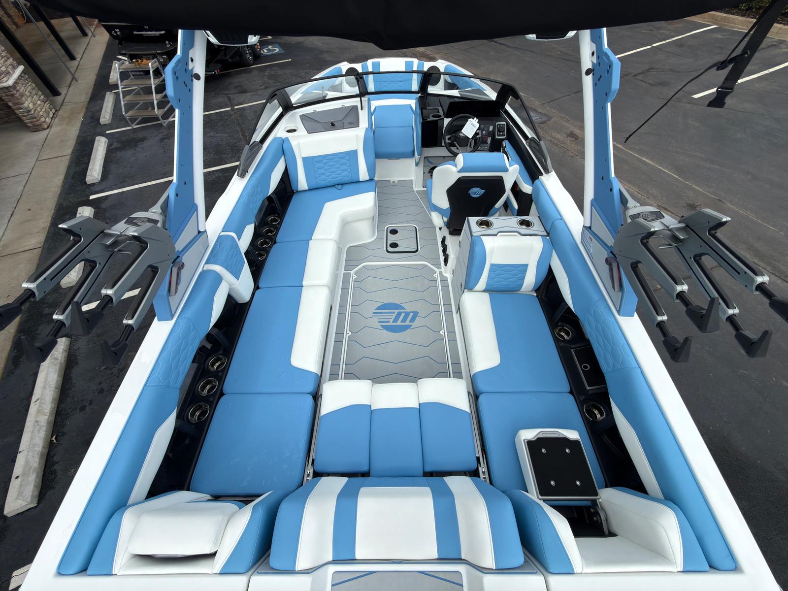 The Malibu Wakesetter 24 MXZ is as practical as it is exhilarating. The generous storage options, including dedicated rope and surfboard storage, make it easy to keep your gear organized and accessible. The boat’s design facilitates easy docking and maneuvering, so you can spend less time worrying about logistics and more time enjoying the water.The protective boat and swimboard covers help maintain the boat’s appearance and value, while the efficient engine and alternator system support all your electronic needs without compromise. These practical features make ownership straightforward and stress-free, allowing you to focus on making memories with family and friends.