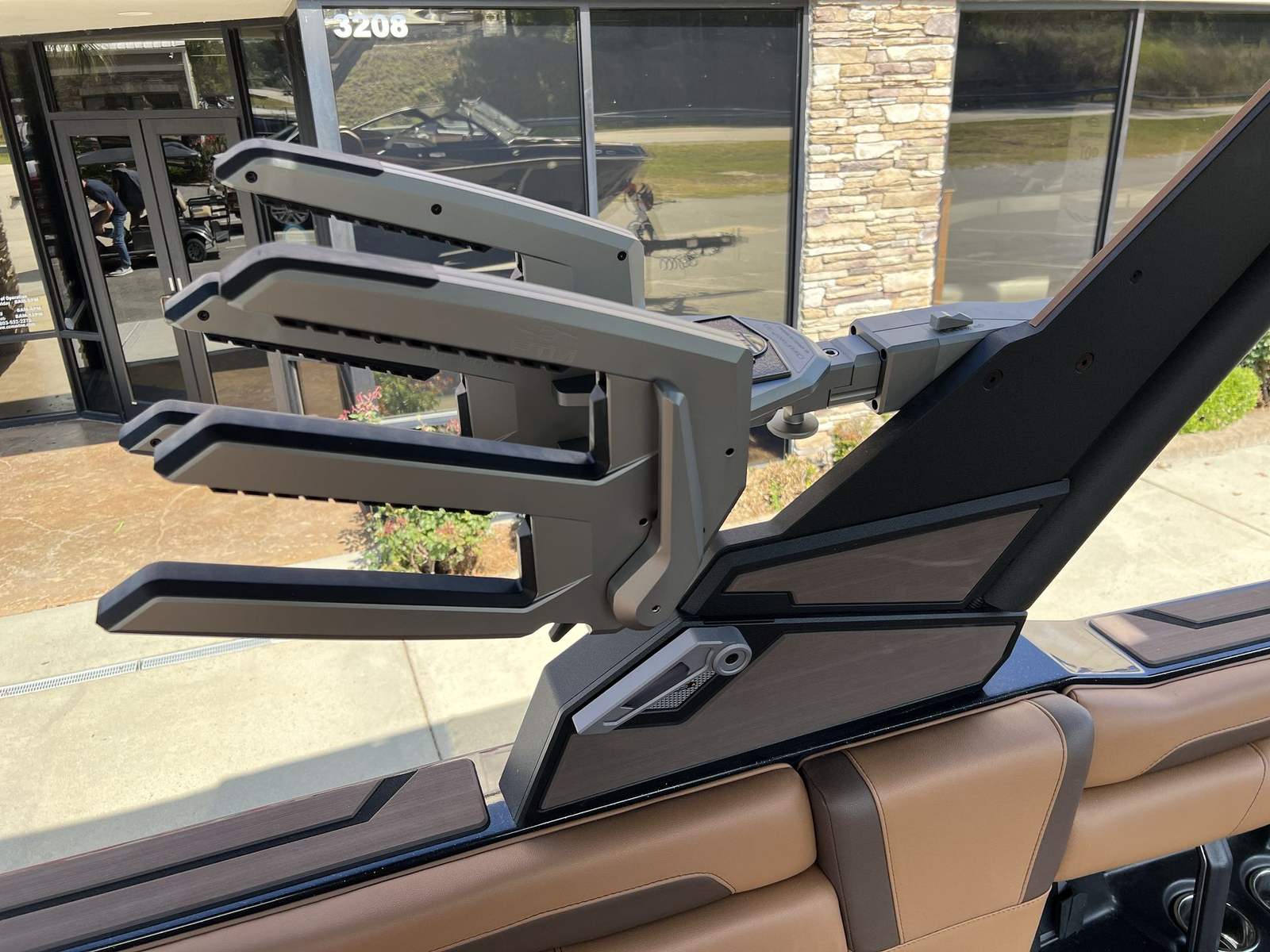 The Malibu Wakesetter 25 LSV is as practical as it is exhilarating. Its 25-foot length offers ample storage for gear, life jackets, and water toys, keeping the deck clutter-free and organized. The boat’s design makes docking and maneuvering straightforward, even for those new to boating. The efficient Malibu Monsoon M6DI engine and advanced propeller design contribute to fuel efficiency, allowing you to spend more time on the water and less time at the pump. The protective covers and extended awning help safeguard your investment, while the heater ensures comfort during cooler outings. Every detail is crafted to make ownership easy, enjoyable, and worry-free.