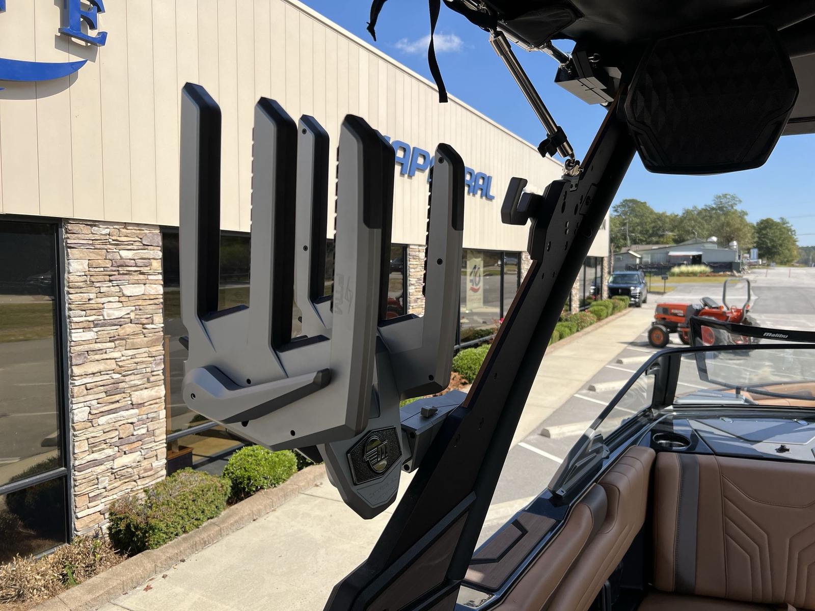 The 2026 Malibu Wakesetter 25 LSV is loaded with innovative features designed to enhance your time on the water. The Standard - 17x155 - 3077 propeller ensures optimal thrust and efficiency, while the CS Boat Cover with APS 3 and Swimboard Cover protects your investment from the elements when not in use. Enjoy extended shade and comfort with the CS Extended Awning and the CS Extended Gen II Surf Dual Coverage Bimini, which also offers convenient rope and surfboard storage. The 5-outlet heater keeps everyone warm during early morning sessions or cooler days, ensuring year-round enjoyment. The Sepia Brown Wakesetter hull graphics add a touch of elegance and personality, making this boat as visually stunning as it is functional.