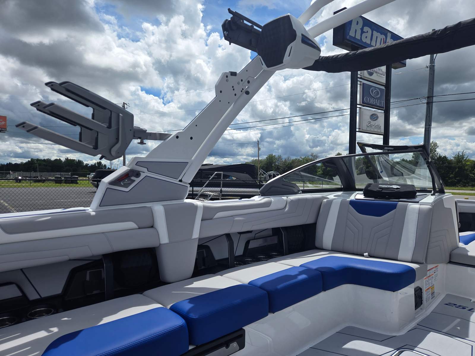 Owning the Malibu Wakesetter 25 LSV means embracing a lifestyle of excitement, comfort, and social connection. The spacious 25-foot layout offers plenty of room for guests to relax, socialize, and enjoy the ride. The advanced sound system transforms every trip into a party, while the heater ensures comfort in all conditions. The boat’s innovative storage solutions, including the PTM Dual Coverage Bimini, keep your gear organized and accessible, so you can focus on fun instead of logistics.The Malibu Monsoon MD6i engine’s power and reliability mean you’ll spend less time worrying about maintenance and more time making memories. The surf pipe exhaust and precision propeller work together to create ideal wakes and waves, giving riders of all skill levels the perfect canvas for their tricks and maneuvers. With its striking graphics and modern design, the Wakesetter 25 LSV is as much a statement piece as it is a performance machine.
