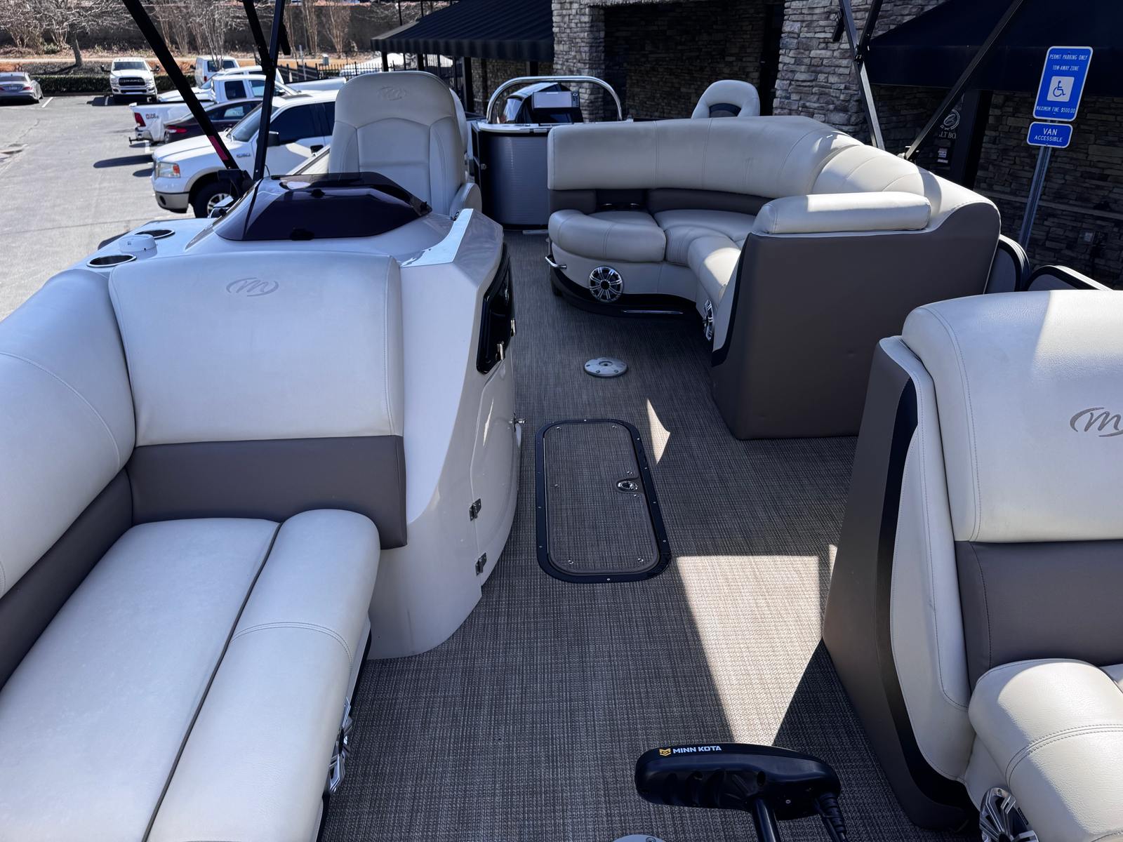 THIS 2020 MANITOU OASIS ANGLER 220 SHP WITH ONLY 95 HOURS ON THE 250 HP MERCURY PRO XS FOUR STROKE. FULL ENGINE SERVICE AND INSPECTION JUST COMPLETED.
