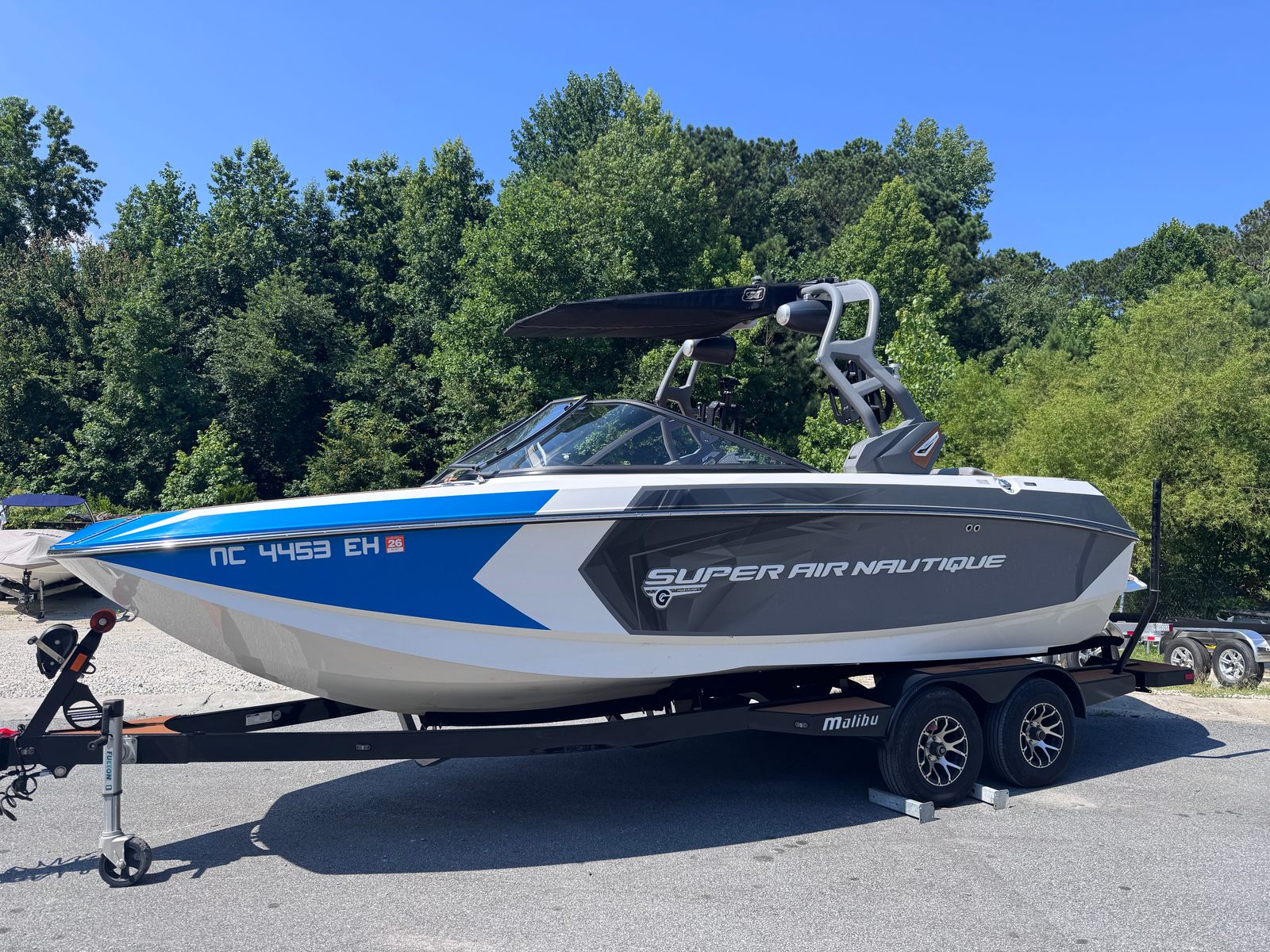 The 2018 Nautique Super Air G21 is a top-tier wakeboard and wakesurf boat, blending luxury, performance, and style. With its 21-foot frame, it’s perfect for handling big wakes in compact spaces. Powered by a robust PCM engine, it offers impressive torque and smooth handling. Its advanced Nautique Surf System allows customizable waves for any rider's skill level, while the plush interior, touchscreen helm, and premium sound system ensure comfort and entertainment on the water. Ideal for water sports enthusiasts seeking precision, comfort, and reliability in a sleek package.