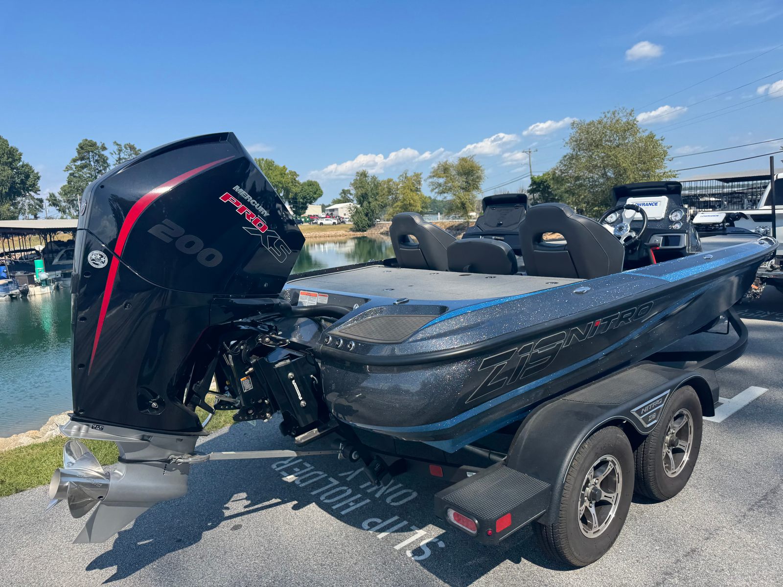 THIS BOAT IS WELL EQUIPPED AND IN LIKE NEW CONDITION ALL AROUND! NEEDS NOTHING TO BE READY FOR THE WATER. 200HP MERCURY PRO XS – (23 ORIGINAL ENGINE HOURS) TANDEM AXLE TRAILER / FULL COVER A FEW OPTIONS INCLUDED: -JACK PLATE -LOWRANCE GHOST TROLLING MOTOR W/ ACTIVE TARGET -HOTFOOT THROTTLE -KICKER STEREO SYSTEM -LOWRANCE HDS 9 MOUNTED SCREEN(S) -ON BOARD BATTERY CHARGER -AFT 19 GALLONS INSULATED LIVEWELLS -DUAL REMOVABLE PEDESTAL FISHING SEATS -OVERSIZED ROD LOCKERS (UP TO 8’) -TACKLE STORAGE ORGANIZERS MUCH MORE THAN WHAT IS LISTED HERE. LOCATED IN BUFORD, GA