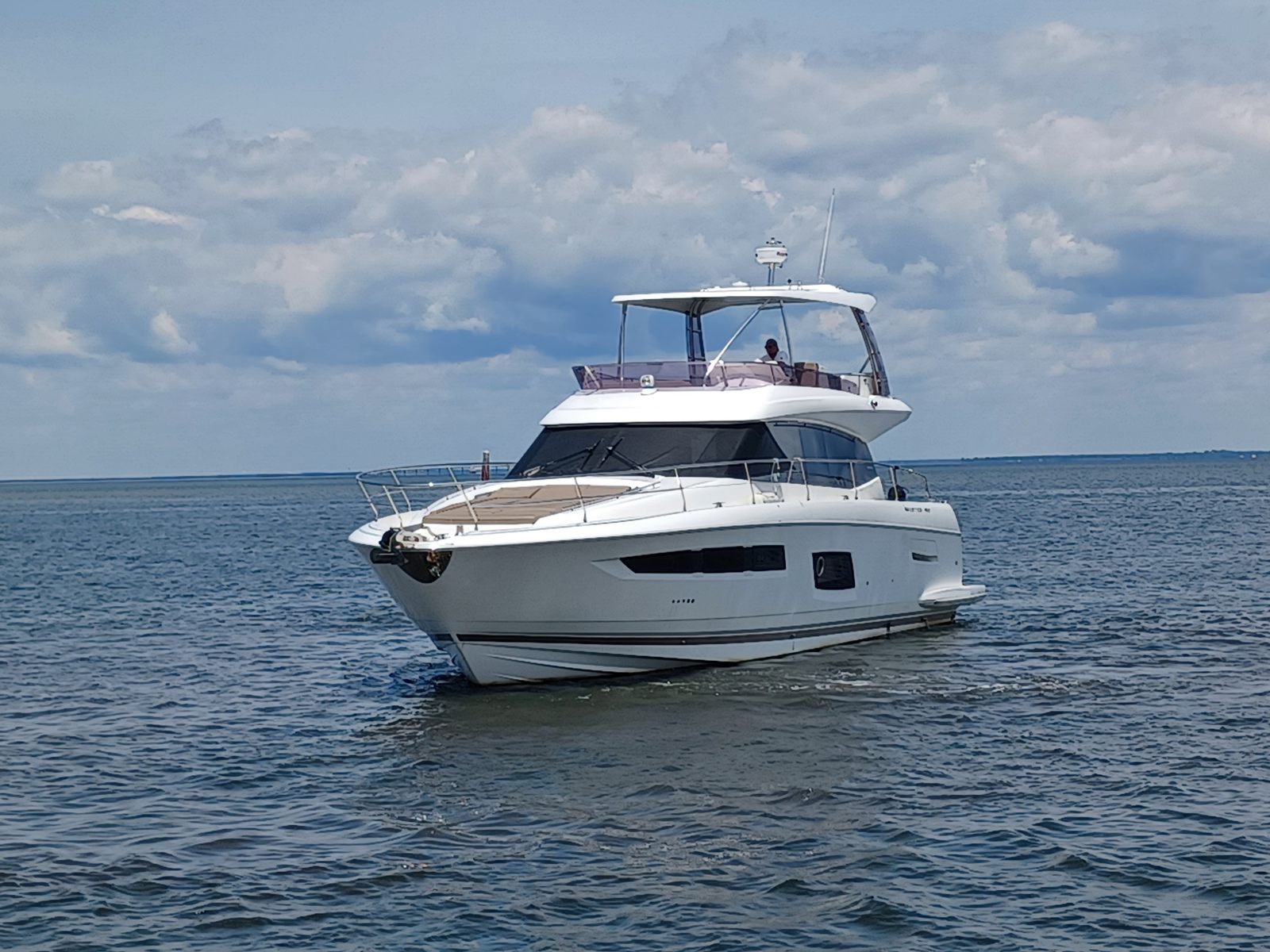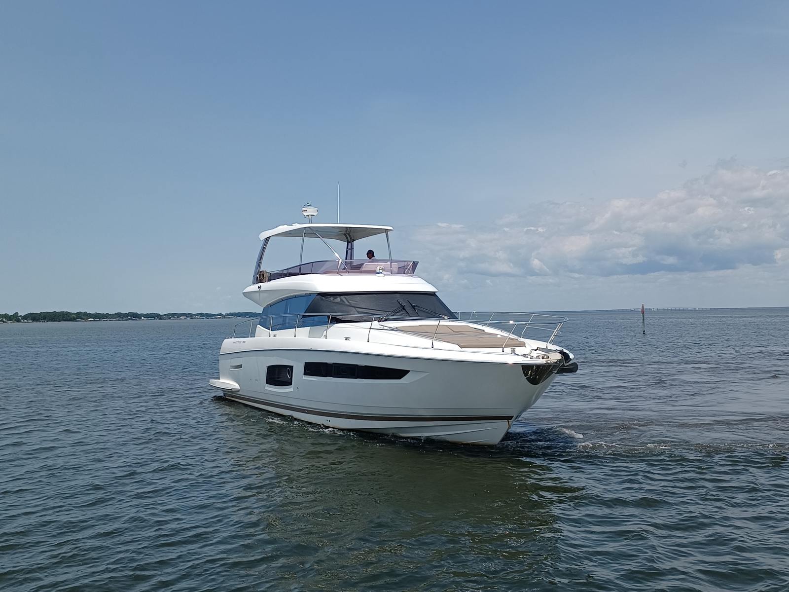 “Lovin Life” is a lightly used, Captain maintained yacht that has been thoughtfully cared for by her current Owners. The boat previously spent much of its life in freshwater on the Great Lakes. This particular Prestige 550 Flybridge is one of the few that has a hardtop rather than a canvas bimini making the spacious flybridge area the place to be underway complete with a wet bar, sink, electric grill and two refrigerators.
