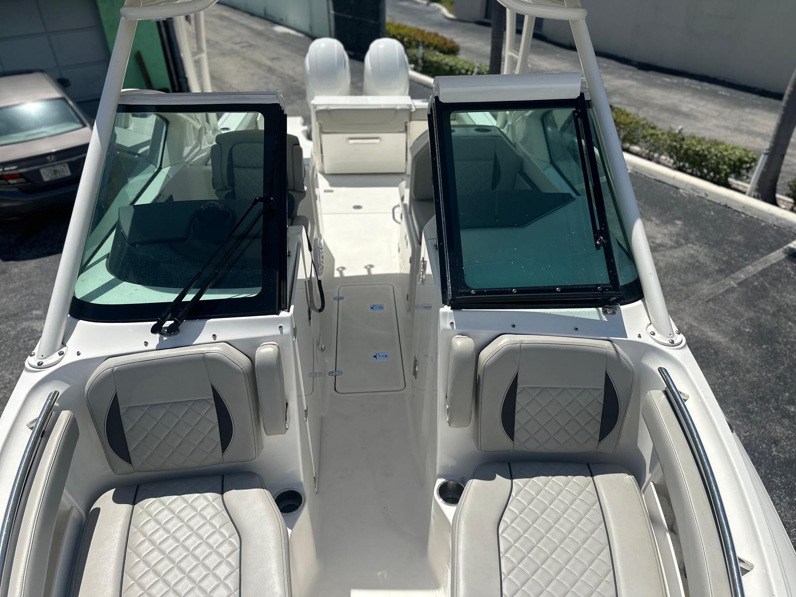 Turnkey and ready for delivery, this 2023 Pursuit DC 266 is the perfect dual console for family cruising, or fishing. Powered by reliable twin Yamaha 200’s with 255 hours, she offers smooth performance and confident handling in all conditions. Finished in a clean white hull with an elegant Platinum boot stripe, this DC 266 stands out with timeless style and classic Pursuit lines. The spacious layout includes plush bow seating, a convertible aft lounge, portside head compartment, and ample storage throughout—ideal for long days on the water.
