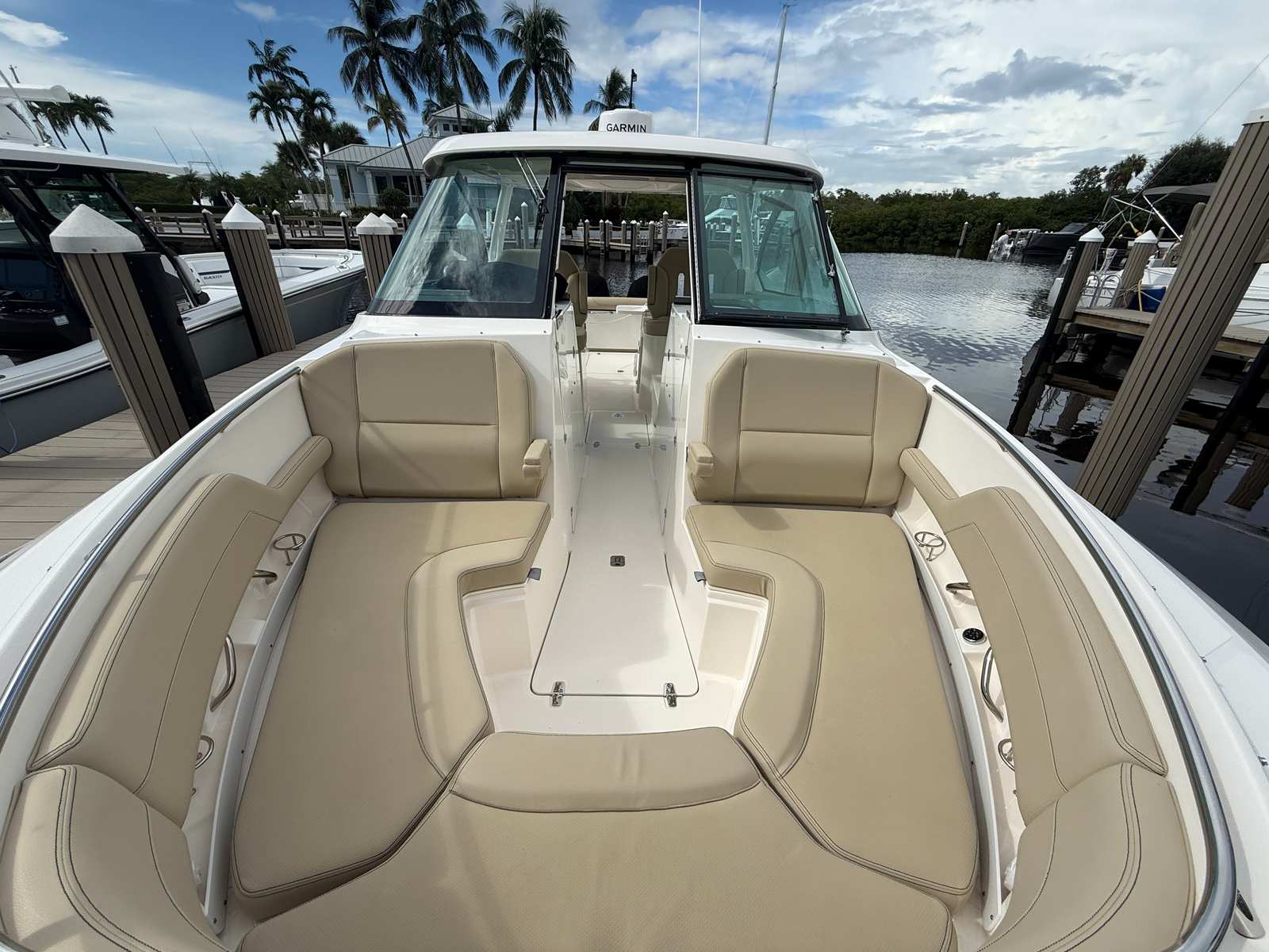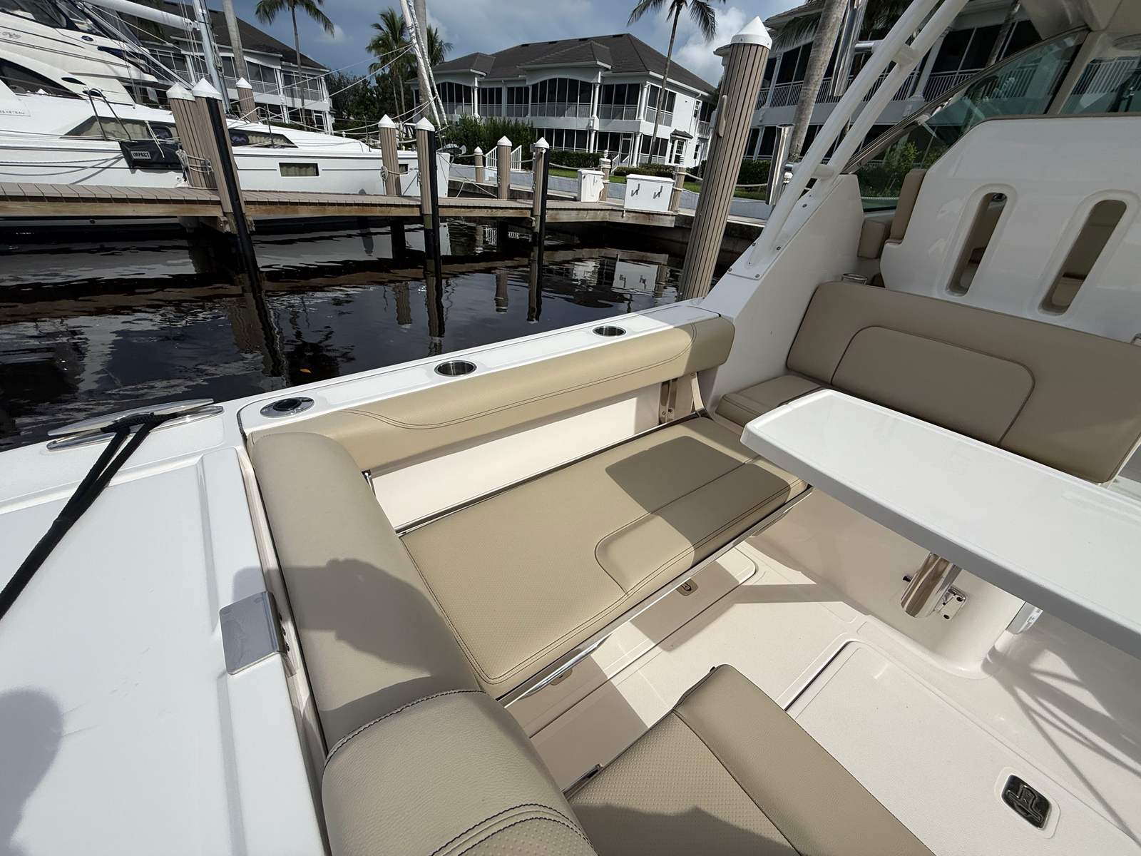 The 2017 Pursuit DC 325 measures an impressive 34.5 feet in length, offering ample space for relaxation, entertainment, and on-the-water activities. As a used Dual Console boat, it has been thoughtfully maintained and is in excellent condition, making it a smart investment for those looking to step up their boating experience. The DC 325’s innovative design maximizes both cockpit and bow seating, ensuring everyone on board enjoys comfort and unobstructed views. Its dual console configuration provides the flexibility to transition seamlessly between fishing, cruising, and socializing, making it one of the most versatile Pursuit boats for sale on the market today.