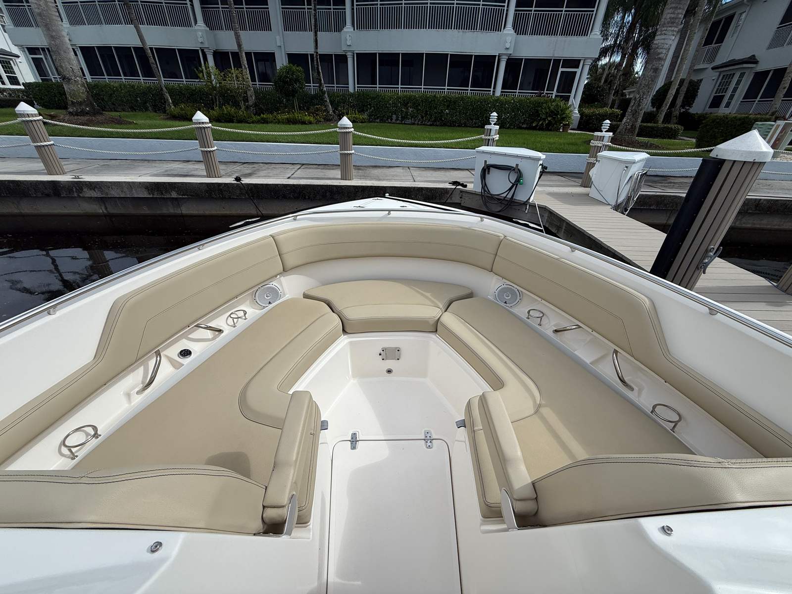 This Pursuit DC 325 is loaded with features designed to elevate your boating experience. The dual console layout offers a spacious and ergonomic helm, complete with intuitive controls and excellent visibility. The generous bow seating area is perfect for sunbathing or enjoying a picnic with friends, while the cockpit provides plenty of room for fishing, lounging, or entertaining guests. The boat’s thoughtful design includes ample storage compartments, allowing you to stow gear, water toys, and personal items securely and conveniently. With a length of 34.5 feet, the DC 325 offers a stable and comfortable ride, even when the water gets lively.