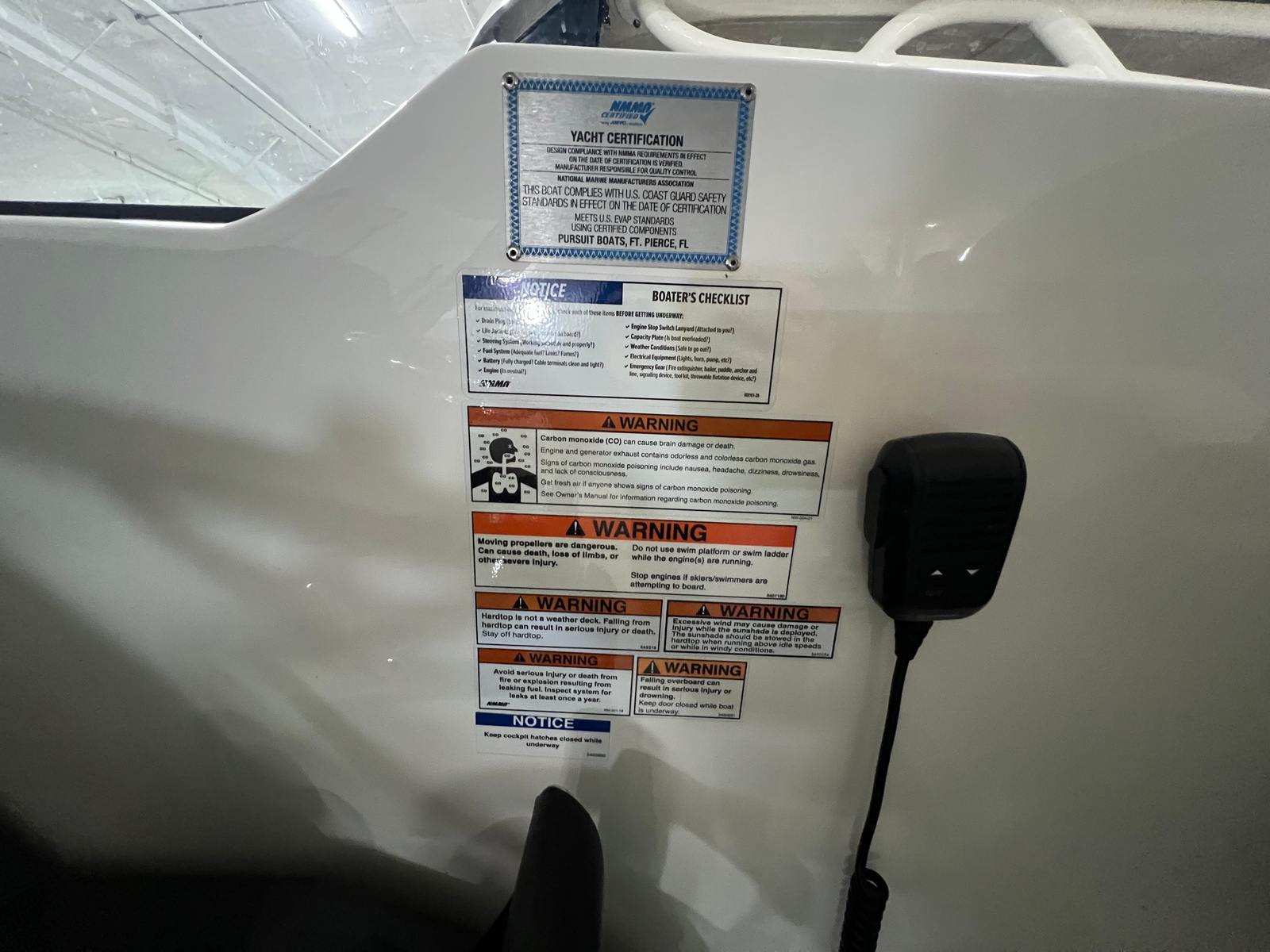 The Pursuit DC 365 is loaded with features that enhance comfort, convenience, and enjoyment on every outing. With six onboard batteries and a dedicated battery charger, you can count on reliable power for all your electronics and accessories. The aft bench seat provides a comfortable spot for guests to relax and take in the views, while the bow seating area is perfect for sunbathing or socializing at anchor.For those who love to entertain, the cockpit grill and wet bar transform the deck into a floating kitchen, allowing you to prepare and serve meals with ease. The double wide helm seat ensures that both captain and companion can enjoy the ride in comfort, while the hard top offers protection from the elements, extending your boating season and keeping everyone shaded on sunny days. Cockpit coaming bolsters add an extra layer of comfort and safety, especially during active pursuits like fishing or water sports.