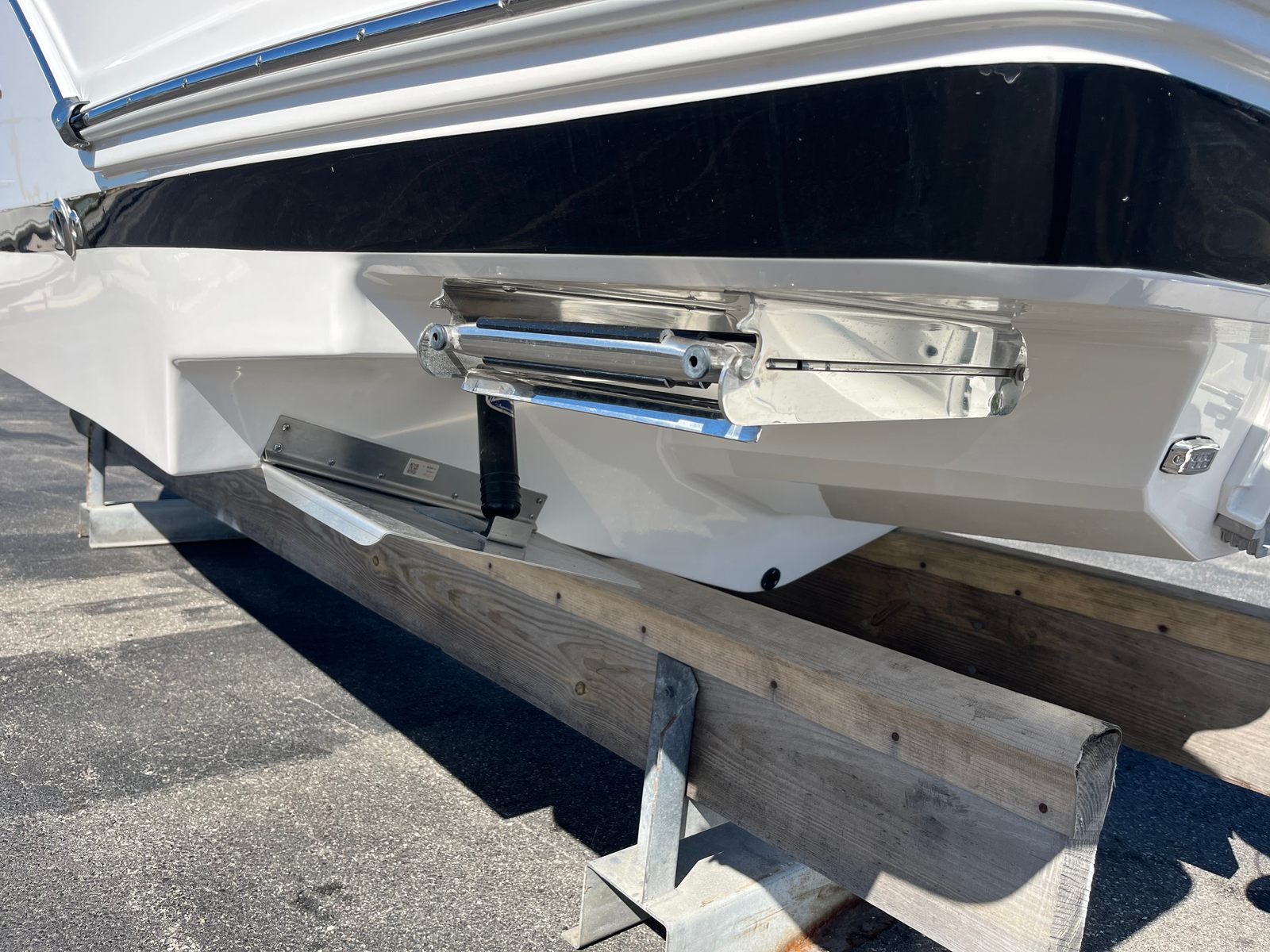 This Regal cruiser boat for sale is packed with premium features designed to enhance your boating experience. The hull color in Tahiti Beach White, paired with the black bootstripe and matching bottom, gives the boat a sophisticated and modern look. The aft vent matches the hull color for a seamless aesthetic, while the Titanium interior adds a touch of elegance and comfort. The cockpit is equipped with a Seagrass mat, providing a soft and stylish surface underfoot that’s perfect for barefoot relaxation.For added convenience and protection, the Regal 26 XO includes a cockpit cover and a full enclosure in black canvas. These features allow you to shield the cockpit from the elements, ensuring your boat stays clean and comfortable in any weather. Whether you’re enjoying a sunny day or seeking shelter from a passing shower, the full enclosure offers versatile options for year-round boating.