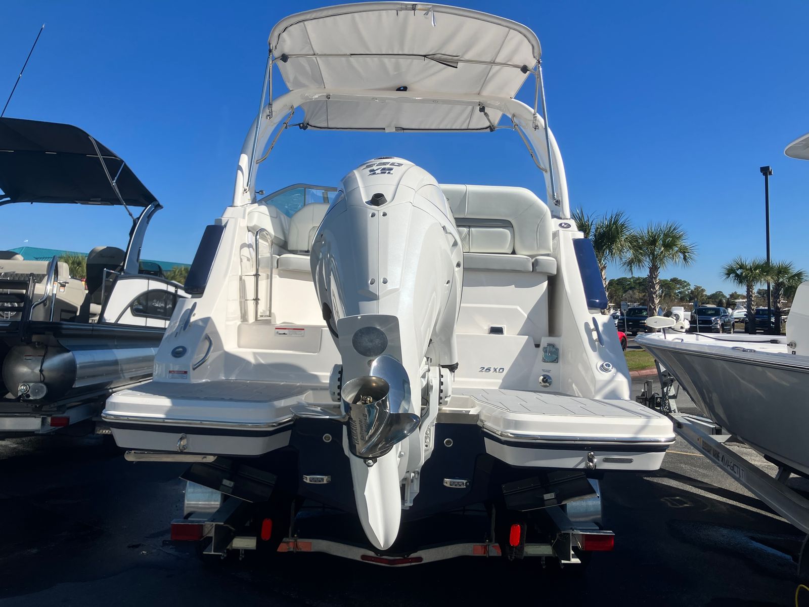 The 2026 Regal 26 XO is packed with special features designed to enhance your time on the water. The Mediterranean Blue hull color, complemented by the Steel Gray bootstripe and matching hull bottom, creates a visually stunning exterior that turns heads wherever you go. The aft vent, matched to the hull color, adds a touch of custom flair, while the Titanium interior provides a luxurious and inviting atmosphere for you and your guests. The Steel Grey canvas offers protection from the elements, ensuring comfort during sunny days or unexpected showers.One of the standout features is the SeaDek swim platform, which provides a soft, non-slip surface for swimmers and sunbathers alike. Whether you are diving into the water, lounging with friends, or preparing for watersports, the SeaDek platform adds both safety and style to your boating experience. The Snowcap and Coastal packages further elevate the boat’s appeal, offering additional enhancements that cater to both aesthetics and functionality.