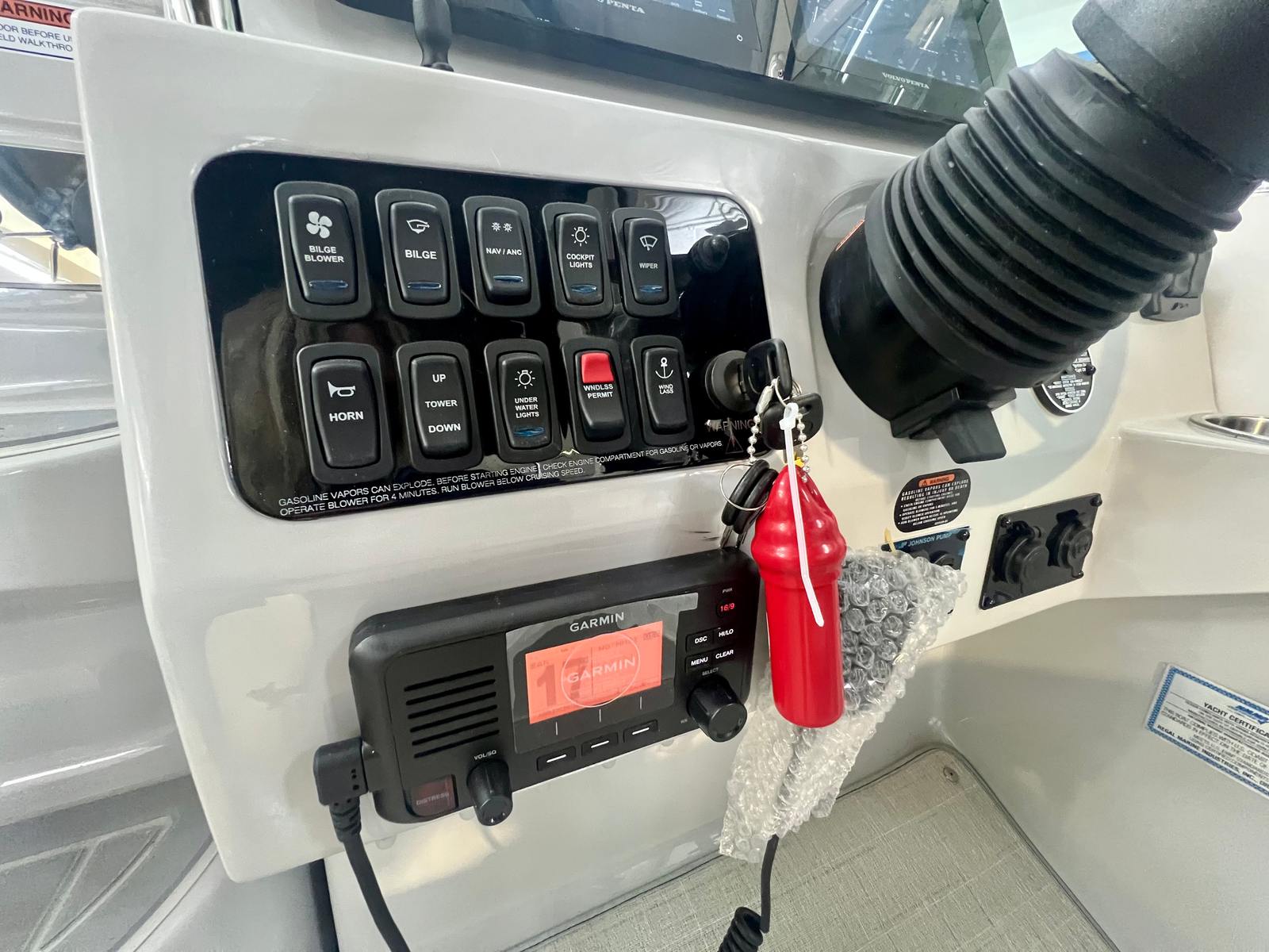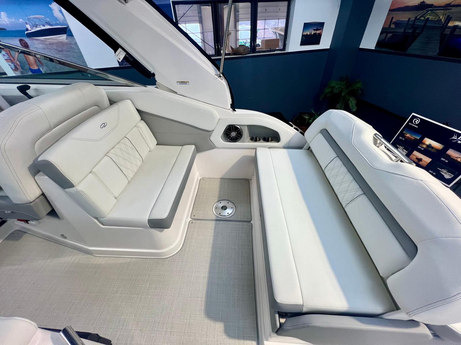 This Regal boat for sale comes loaded with special features designed to enhance your boating experience. The full enclosure, crafted from durable black canvas, provides protection from the elements, allowing you to enjoy your time on the water regardless of the weather. The cockpit is adorned with a luxurious Seagrass mat, offering both comfort and style underfoot, while the Snowcap accents add a touch of elegance to the overall design. The combination of high-quality materials and thoughtful design elements ensures that every moment spent aboard the Regal 28 Express is one of comfort and sophistication.