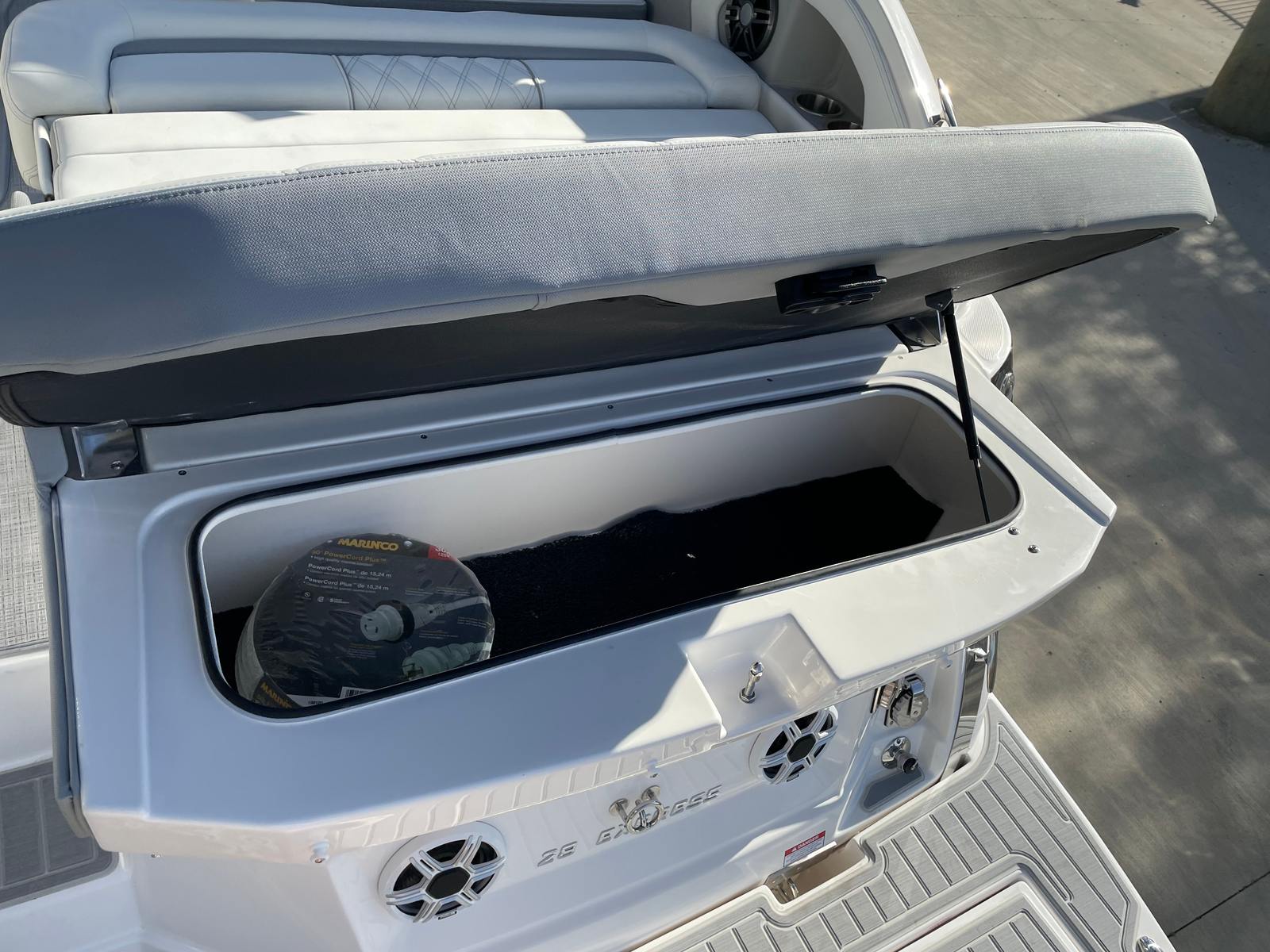 The Regal 28 Express is not only about luxury and style; it is also designed with practicality in mind. The efficient single-engine setup ensures excellent fuel economy, making it easy to enjoy longer trips without frequent stops for refueling. The manageable length of 28.75 feet strikes the perfect balance between spaciousness and ease of handling, allowing for simple docking and maneuvering even in busy marinas.Storage solutions throughout the boat provide ample space for gear, supplies, and personal items, keeping the deck clutter-free and organized. The durable materials and thoughtful design features, such as the cockpit seagrass mat and SeaDek swim platform, make cleaning and maintenance a breeze, so you can spend more time enjoying your boat and less time on upkeep.