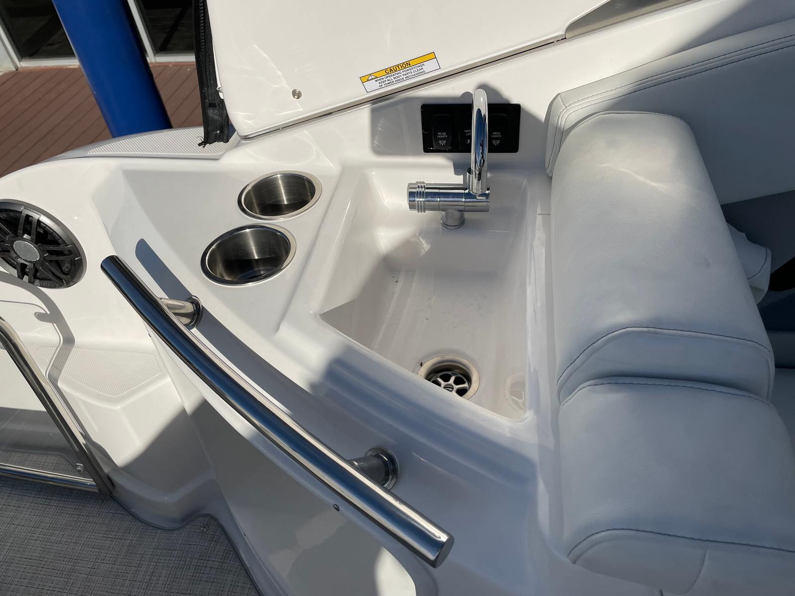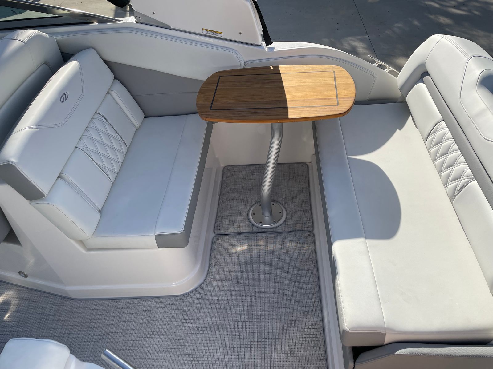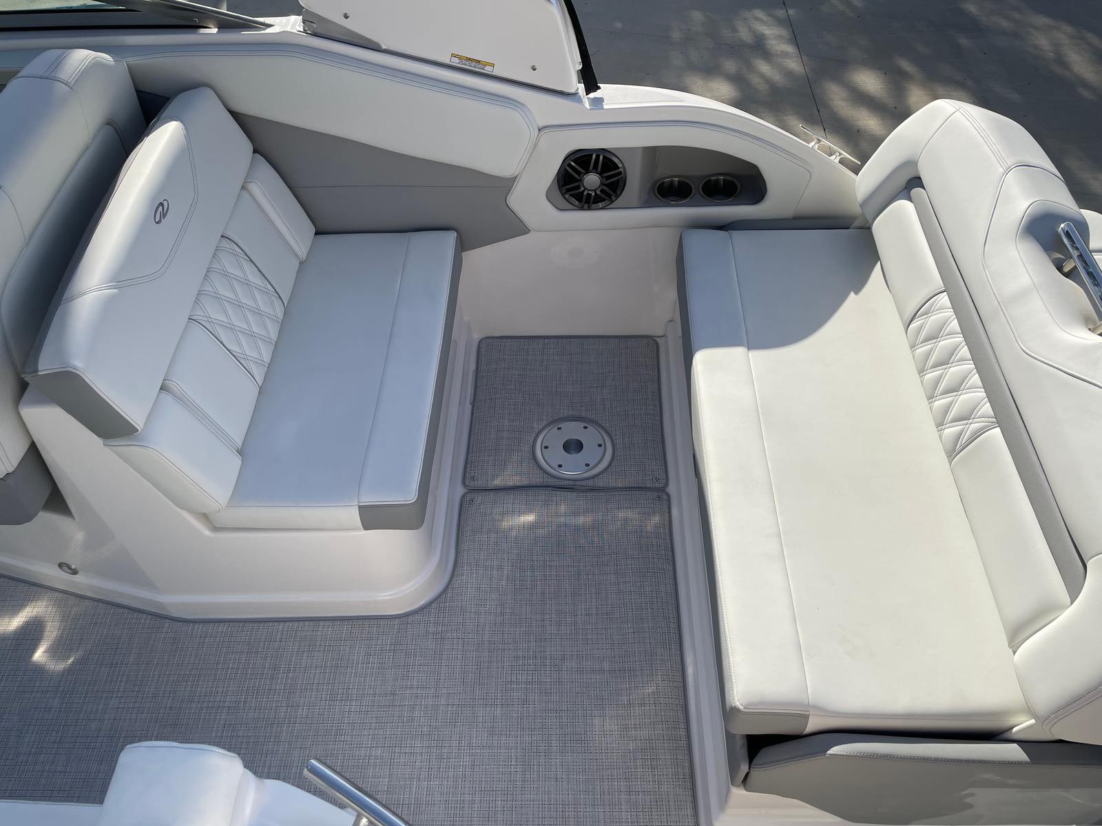 The Regal 28 Express is packed with special features designed to enhance your boating experience. The hull color in Tahiti Beach White, paired with the Black bootstripe and matching deck stripe, creates a visually stunning exterior that is sure to turn heads at any marina. The bottom color continues the Tahiti Beach White theme, ensuring a cohesive and luxurious look. Step aboard to discover the Titanium interior, which offers a modern and inviting atmosphere for you and your guests.For those who appreciate comfort and convenience, the cockpit cover and full enclosure provide protection from the elements, allowing you to enjoy your boat in a variety of weather conditions. The cockpit seagrass mat adds a touch of luxury underfoot, while the SeaDek swim platform offers a safe and comfortable area for swimming, lounging, or preparing for water activities. The Snowcap feature adds an extra layer of style and functionality, ensuring your Regal boat for sale stands out from the crowd.
