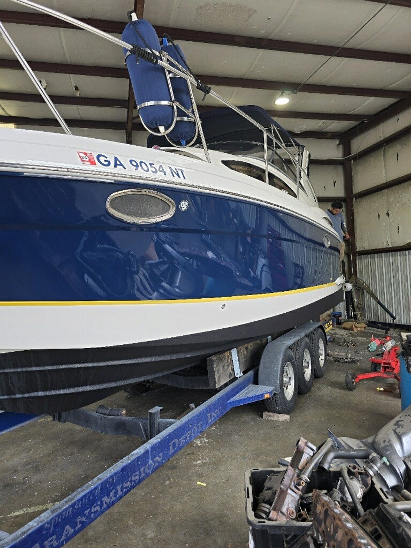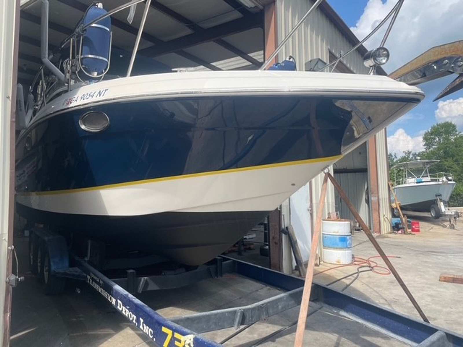 Over the past two seasons, this boat has seen extensive updates that truly set it apart. In 2024, $13,500 was invested including bottom paint, outdrives removed and resealed, new batteries, SeaDek flooring, transom service, and interior carpet. In 2025, it received brand new upholstery, a full mechanical service including impellers, new A/C thermostat, flat screen TV with cover, and LED cockpit lighting. The upgraded Bluetooth stereo with subs and platform controls is a major bonus with over $5K invested.