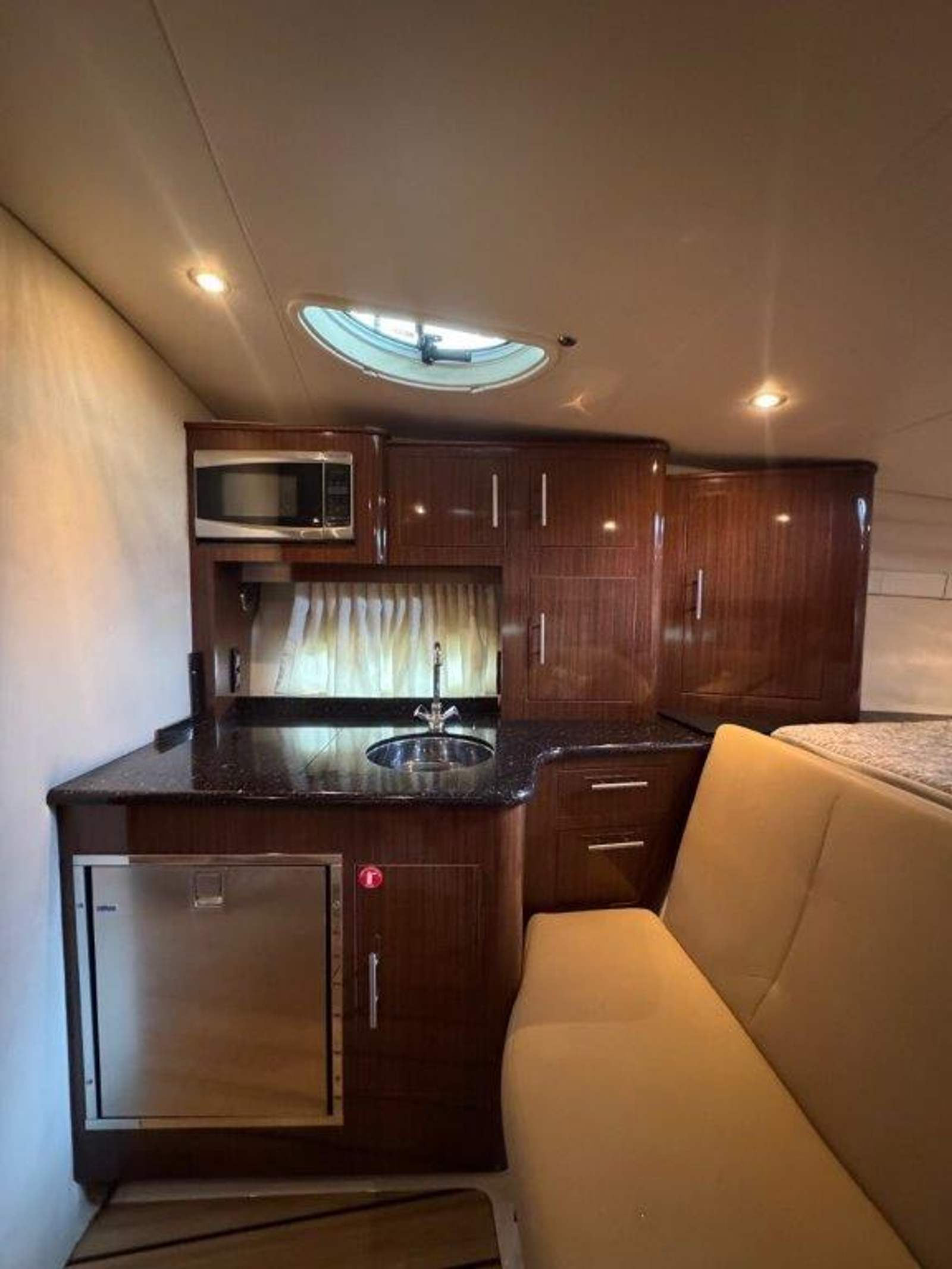 Powered by twin Volvo Penta 300 HP engines with only 362 hours, Wine-N-Down comfortably cruises in the low 30s and reaches top speeds in the mid 40s. The Kohler 5KW generator, with just 382 hours, provides quiet, reliable power wherever you go.