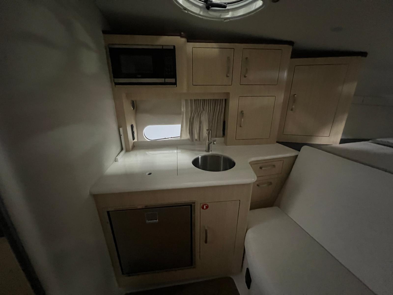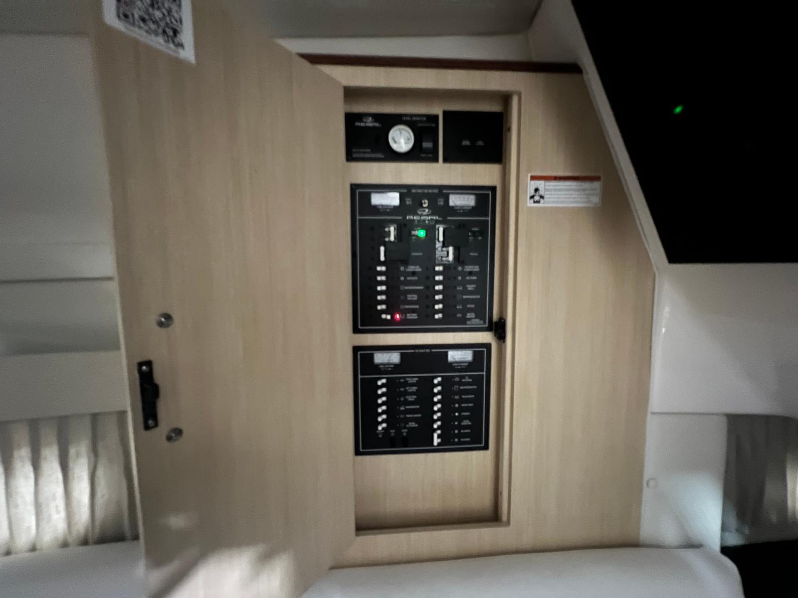 The Regal 33 Express is designed with practicality in mind, making ownership easy and enjoyable. The anchor windlass with all-chain operation streamlines the anchoring process, saving time and effort when you want to stop and enjoy the scenery. The cockpit refrigerator ensures your favorite beverages and snacks are always within reach, perfect for long days on the water.The companionway screen door enhances ventilation while maintaining comfort, and the cockpit seagrass mat provides a soft, non-slip surface for added safety. The boat’s length and layout offer generous storage options for gear, supplies, and personal items, helping you stay organized and prepared for any adventure.Docking is simplified by the cruiser’s responsive handling and dual-engine configuration, allowing for precise movements in tight spaces. The fuel-efficient design ensures you can spend more time exploring and less time refueling, making every trip more enjoyable and cost-effective.