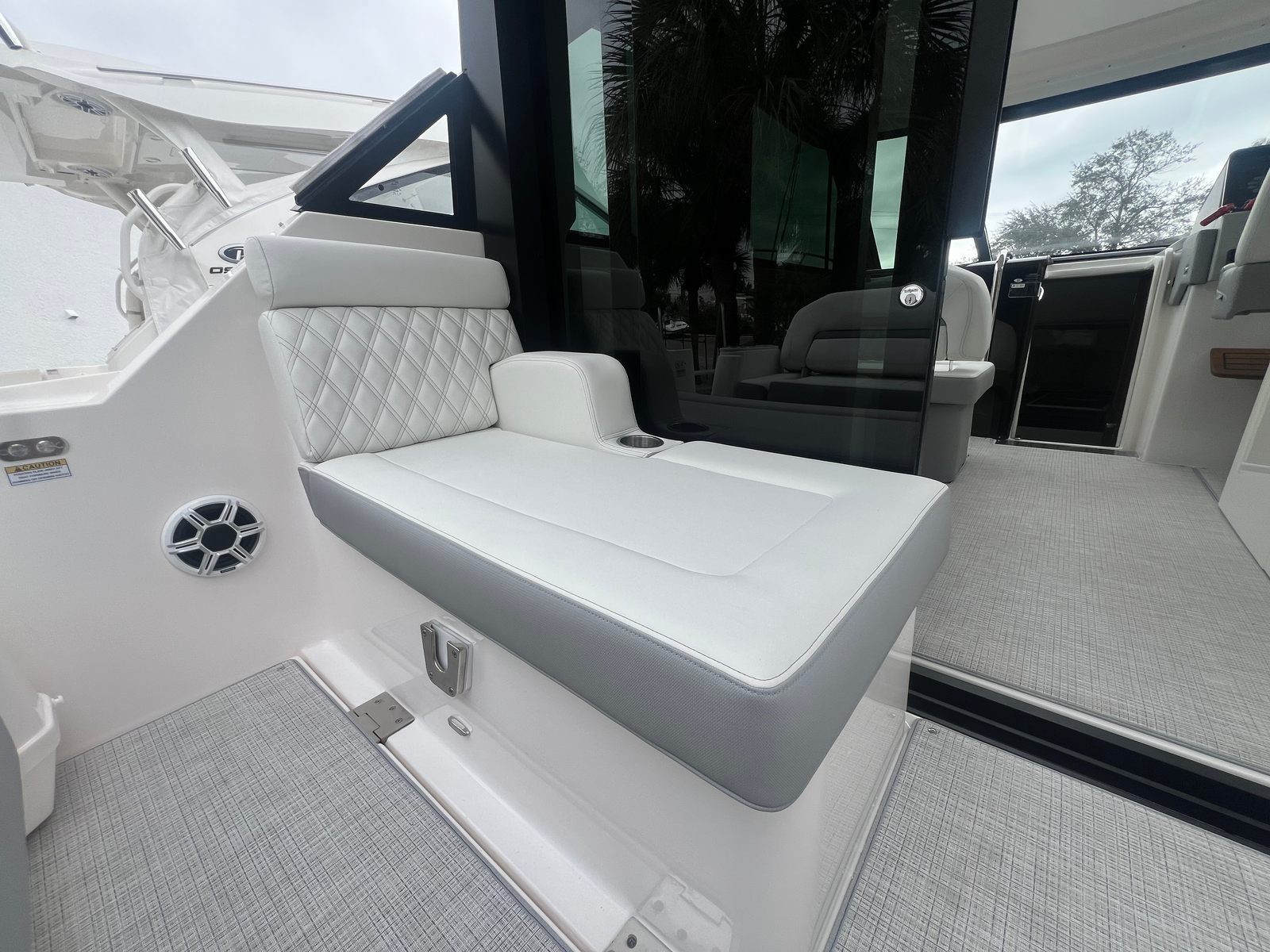 The 2026 Regal 36 XO is packed with special features that enhance comfort, convenience, and enjoyment on every voyage. The TV in the mid cabin provides entertainment for guests, creating a cozy retreat for movie nights or catching up on your favorite shows. The aft cockpit canvas with a Palm Beach enclosure offers protection from the elements while maintaining an open, airy feel, allowing you to enjoy the outdoors in any weather. The manual bow sunshade system extends your comfort zone, providing shade and relaxation on sunny days.For those who love to entertain, the electric grill is perfect for preparing delicious meals on board, while the cruise package ensures a smooth and enjoyable journey. The Garmin HD closed array radar adds a layer of safety and navigation precision, making it easy to chart your course and avoid obstacles. The windshield privacy cover offers added comfort and discretion, allowing you to enjoy your time on the water in complete privacy. Every detail of the Regal 36 XO is designed to maximize your enjoyment and create unforgettable memories.